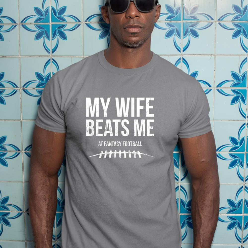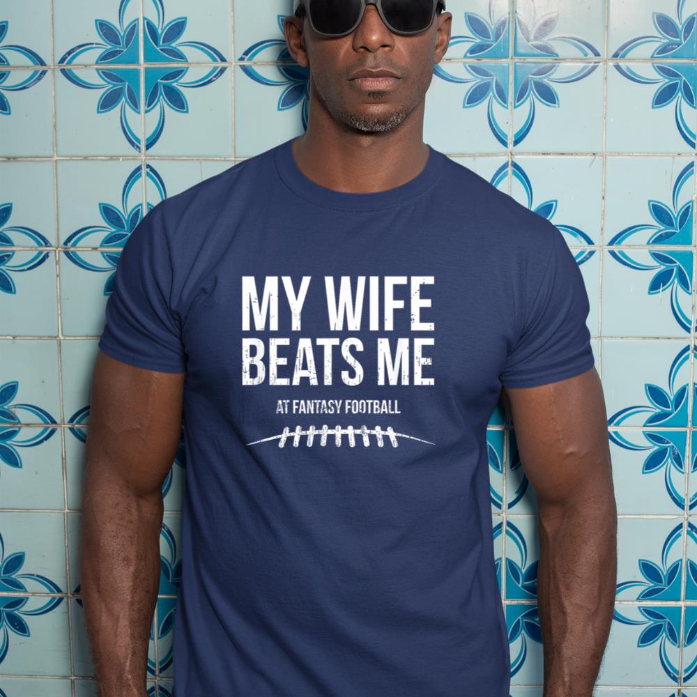 My Wife Beats Me at Fantasy Football – Funny Hidden Message T-Shirt