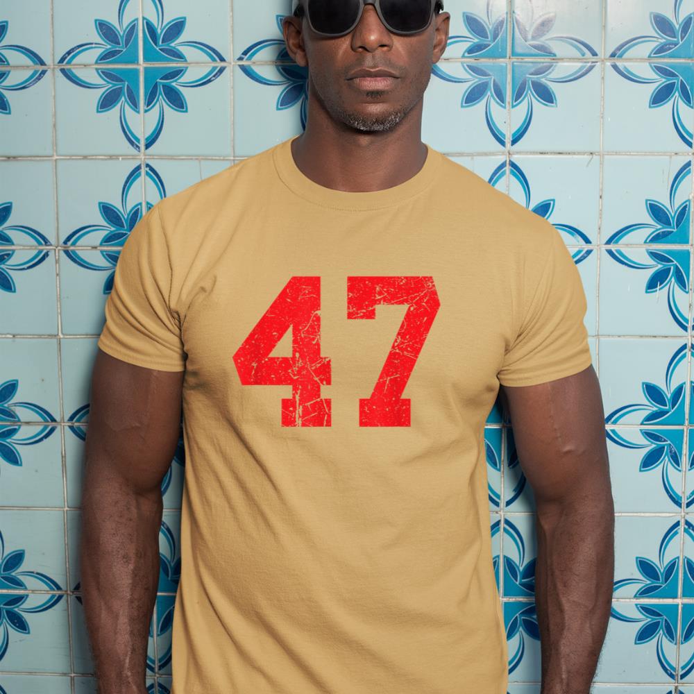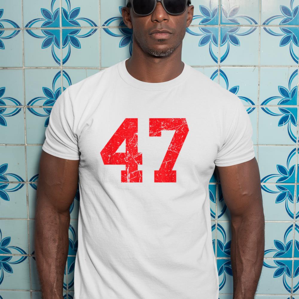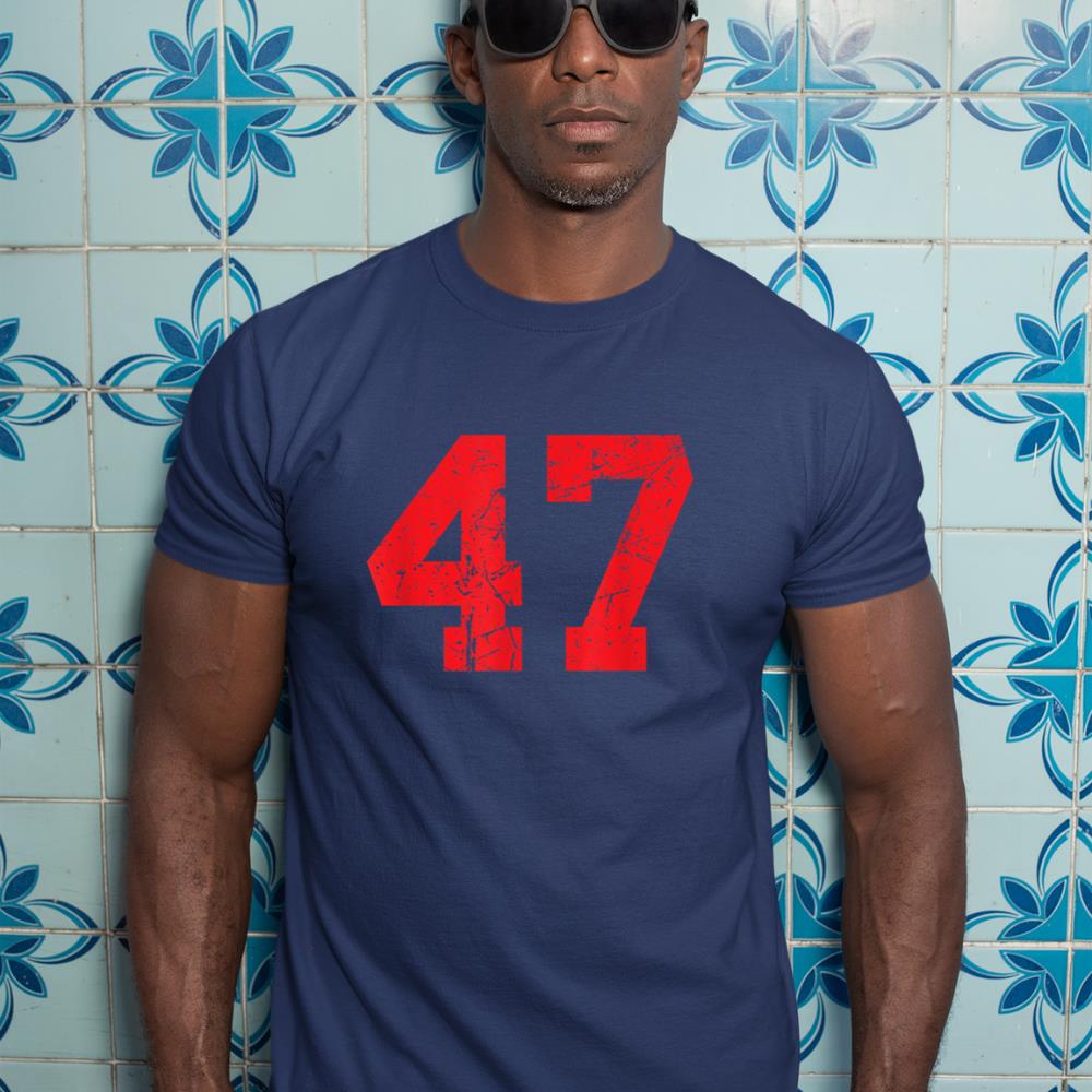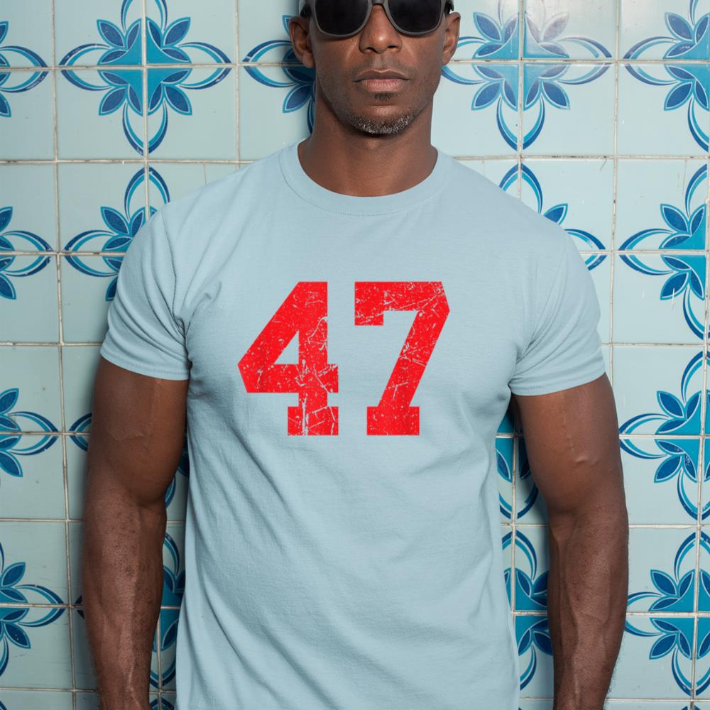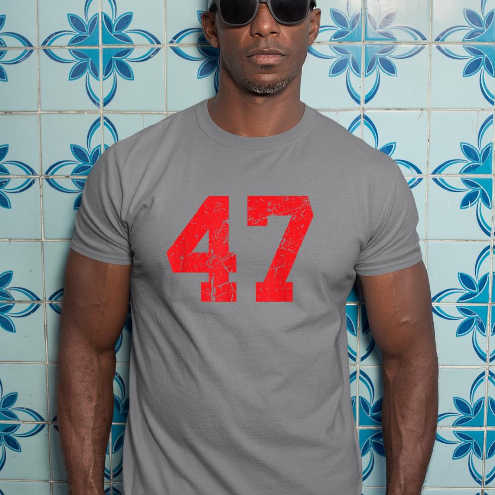 Number #47 Red Distressed Varsity Number T-Shirt