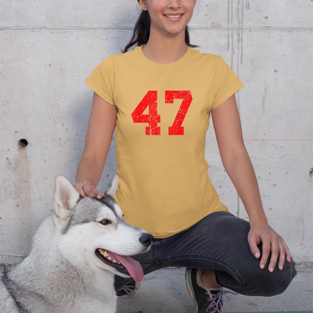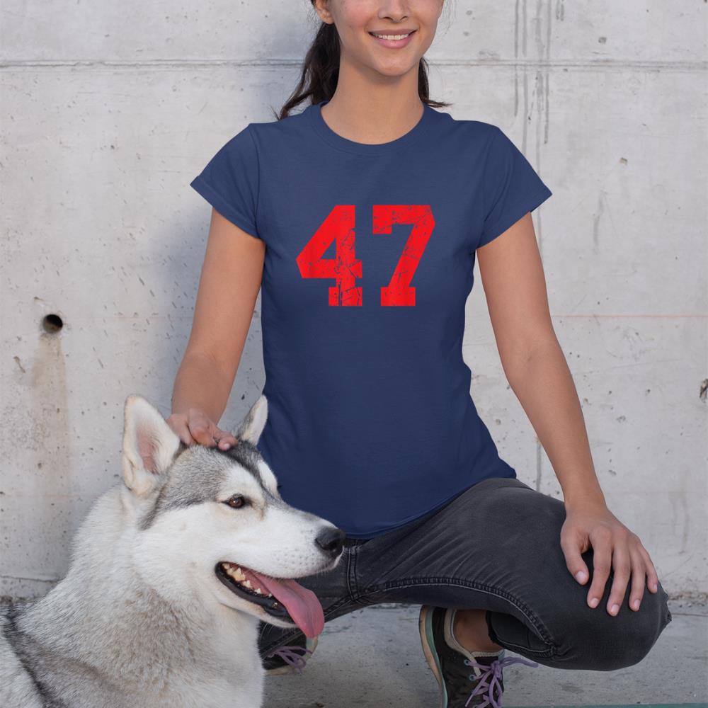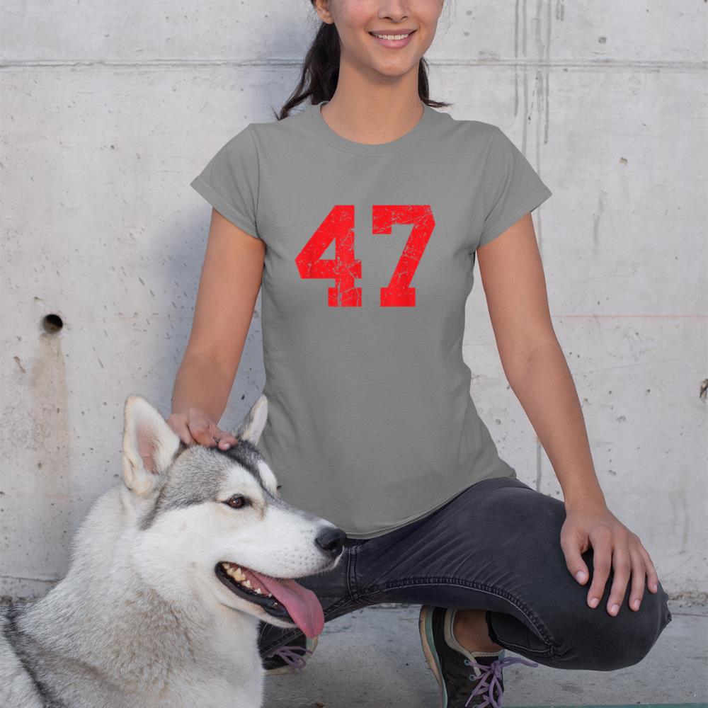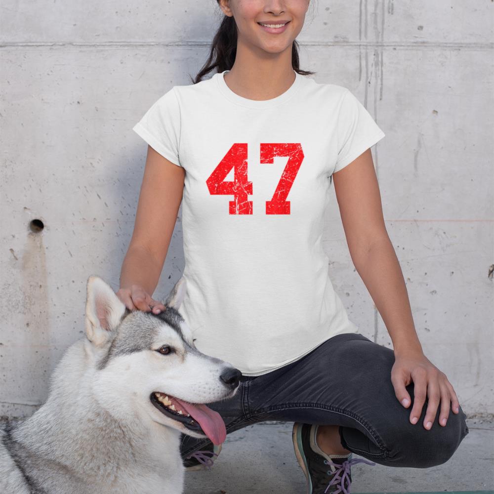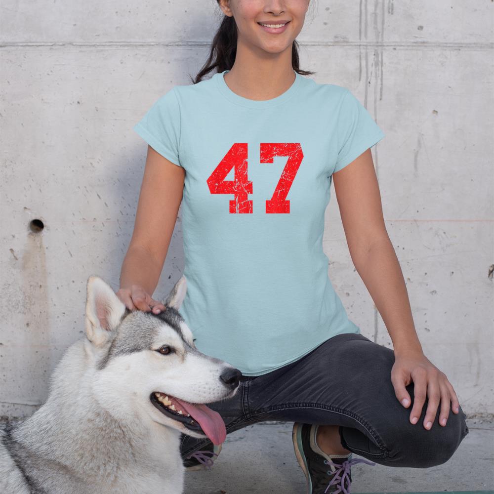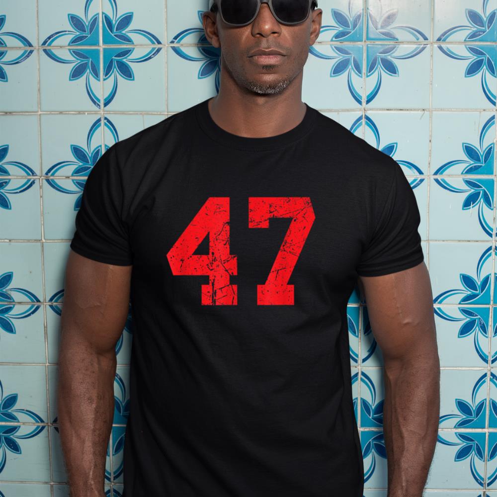Number #47 Red Distressed Varsity Number T-Shirt