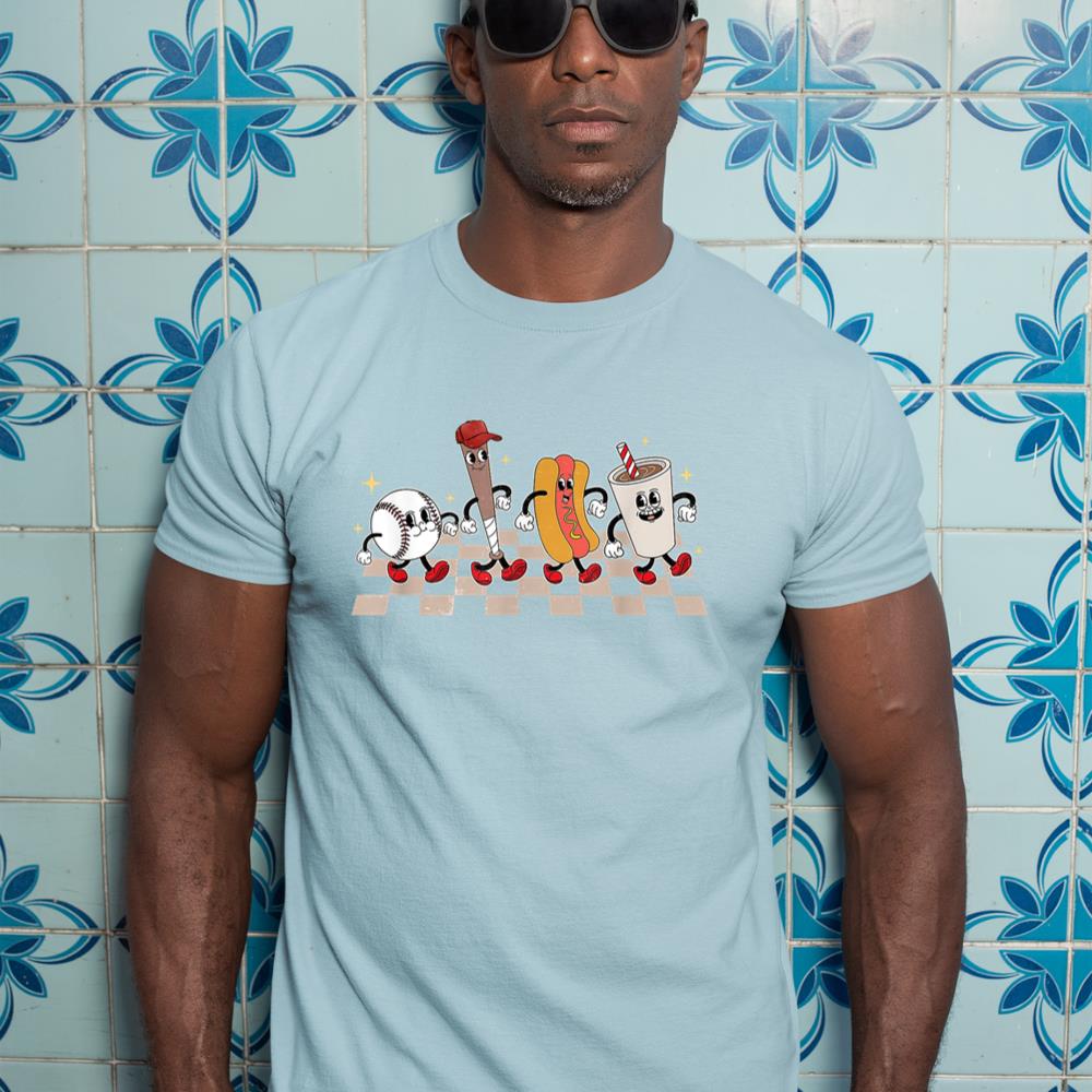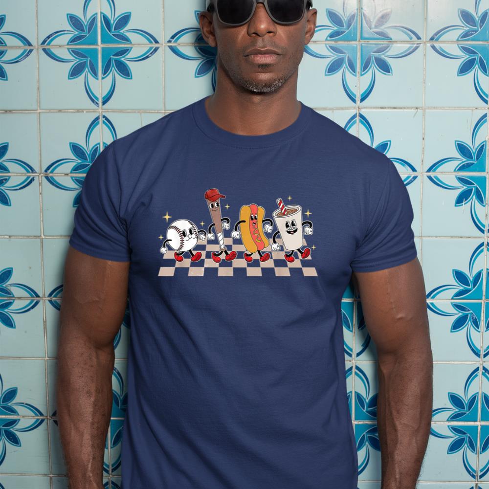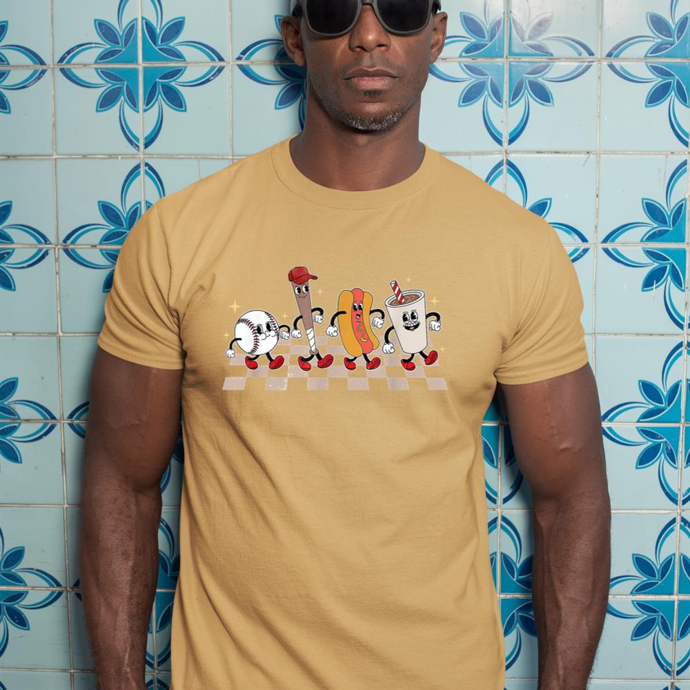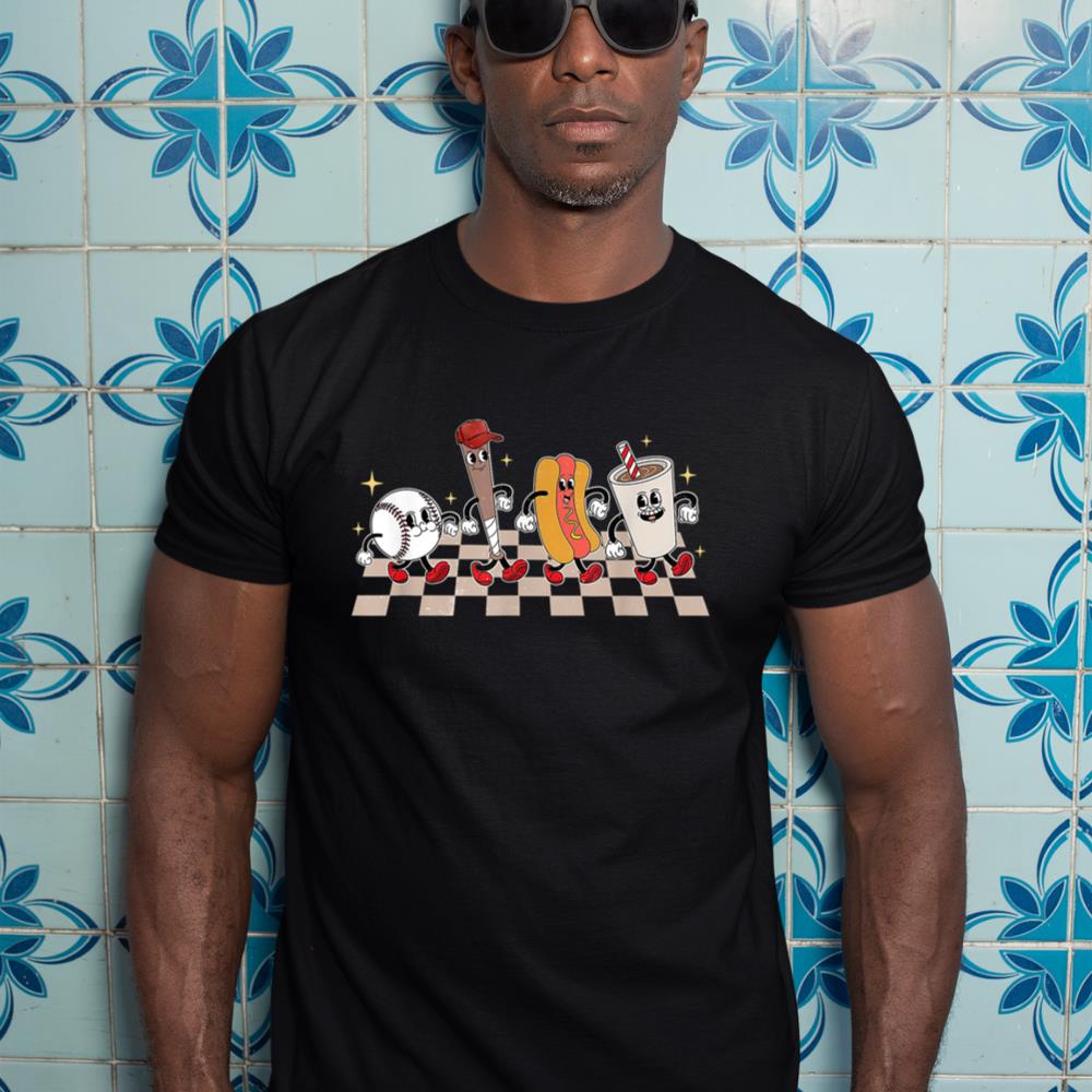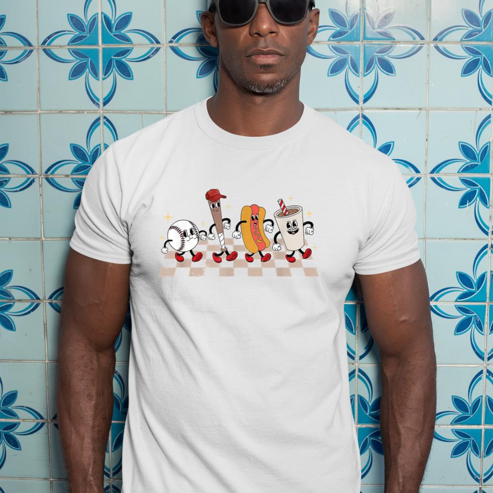 Retro Baseball Food and Drink Baseball Season Lover Funny T-Shirt