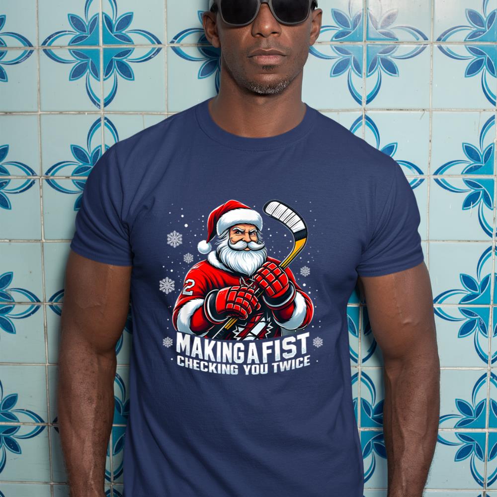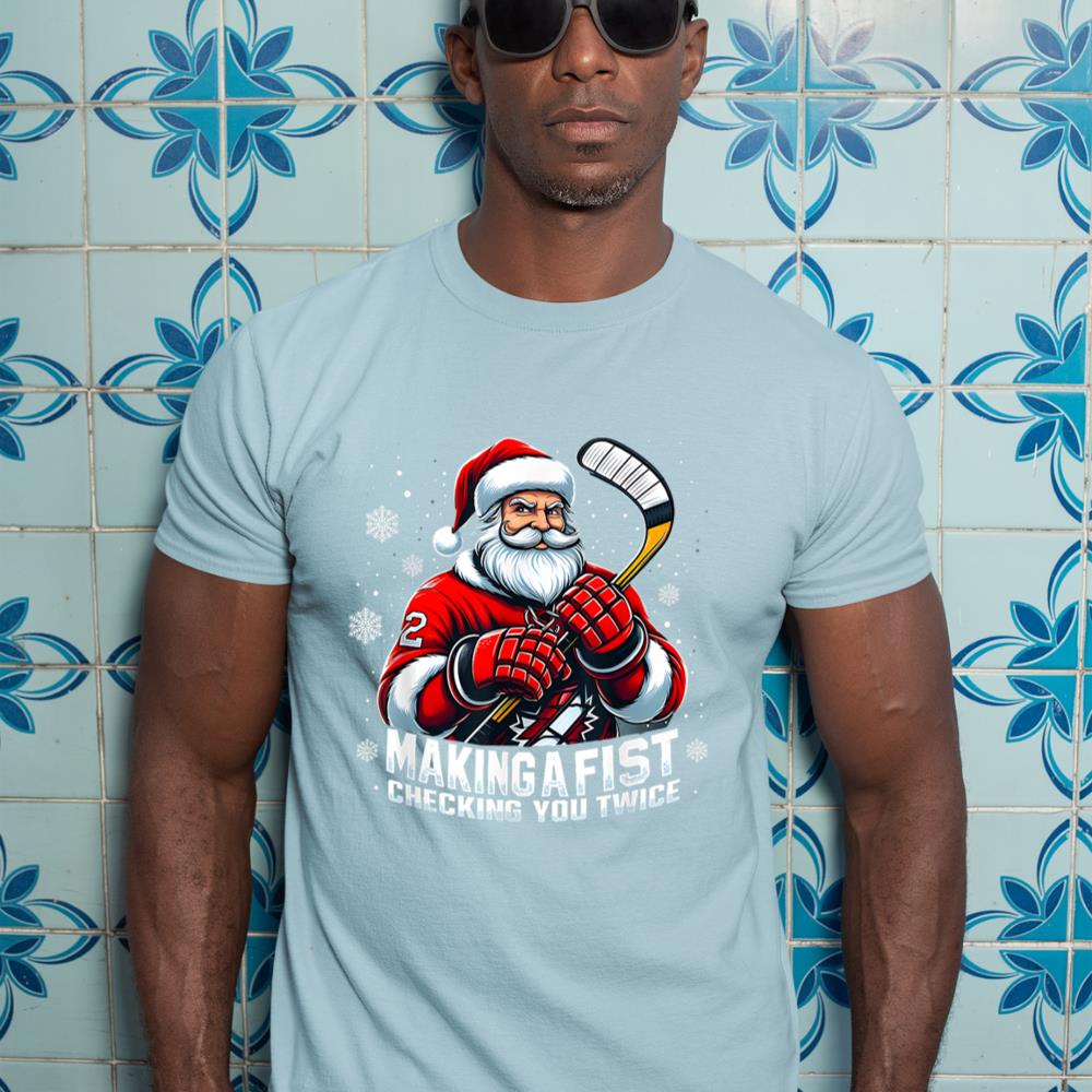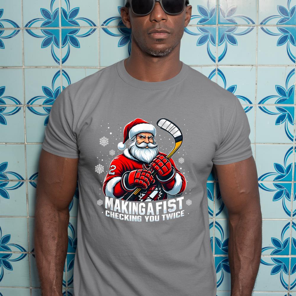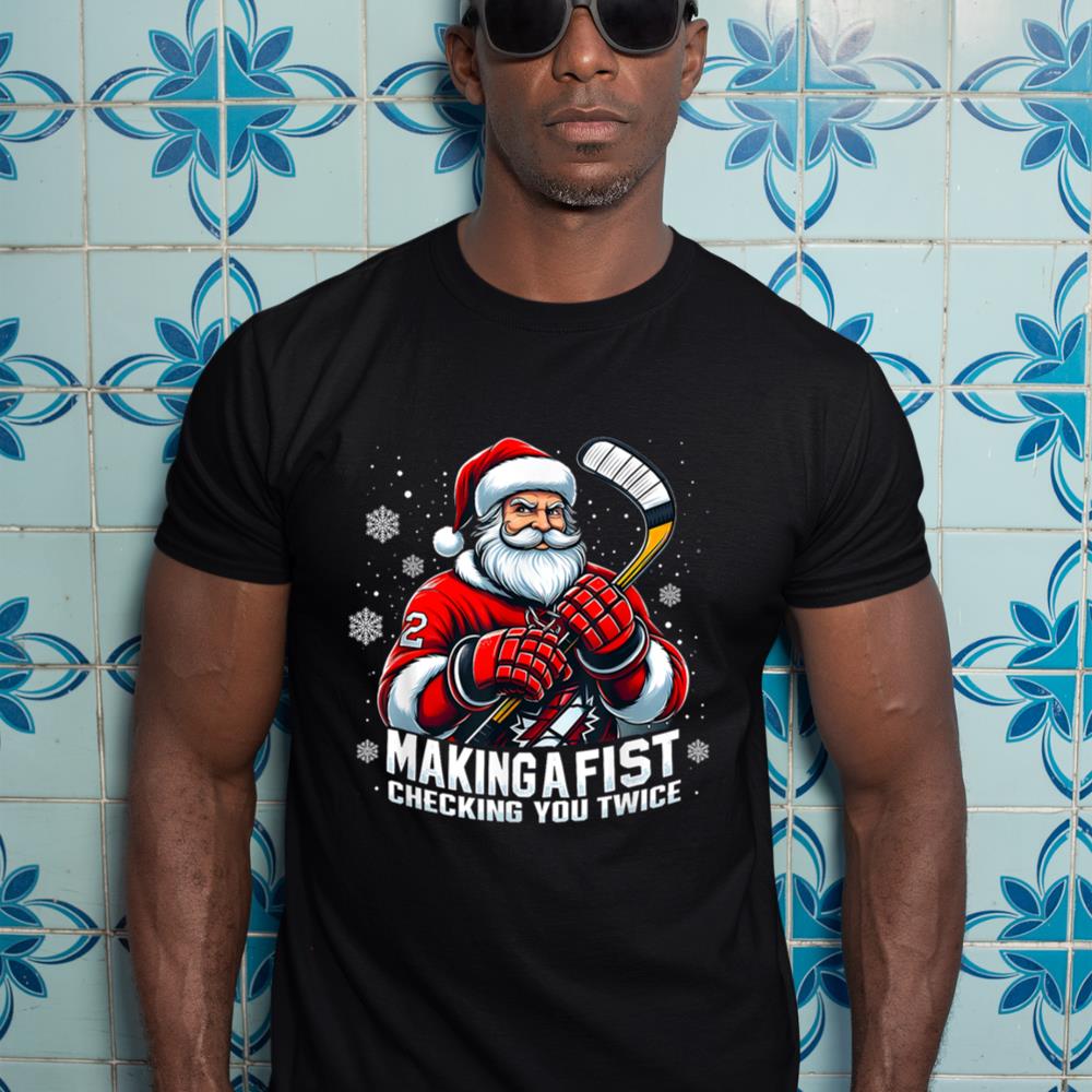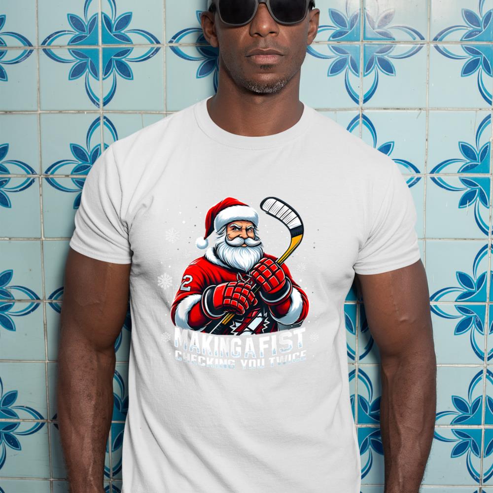 Xmas Santa Hockey Players Making A Fist Checking Your Twice T-Shirt