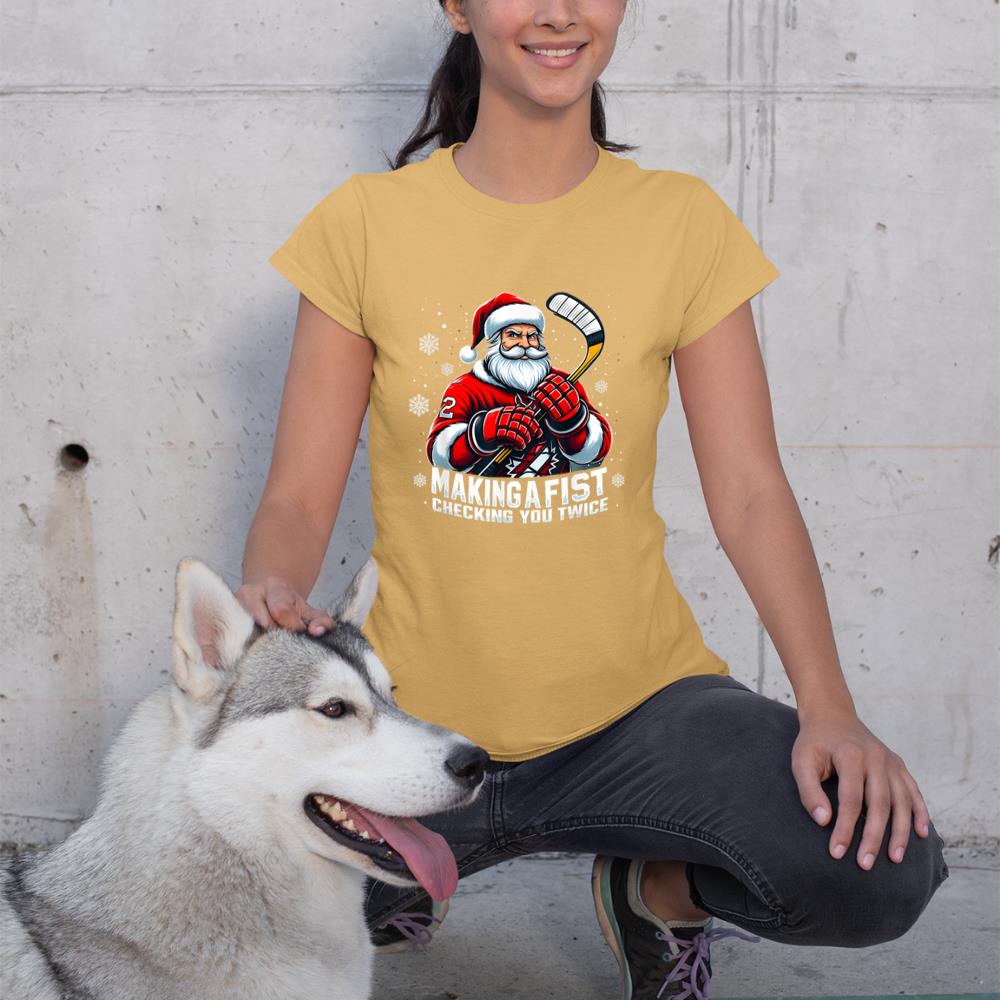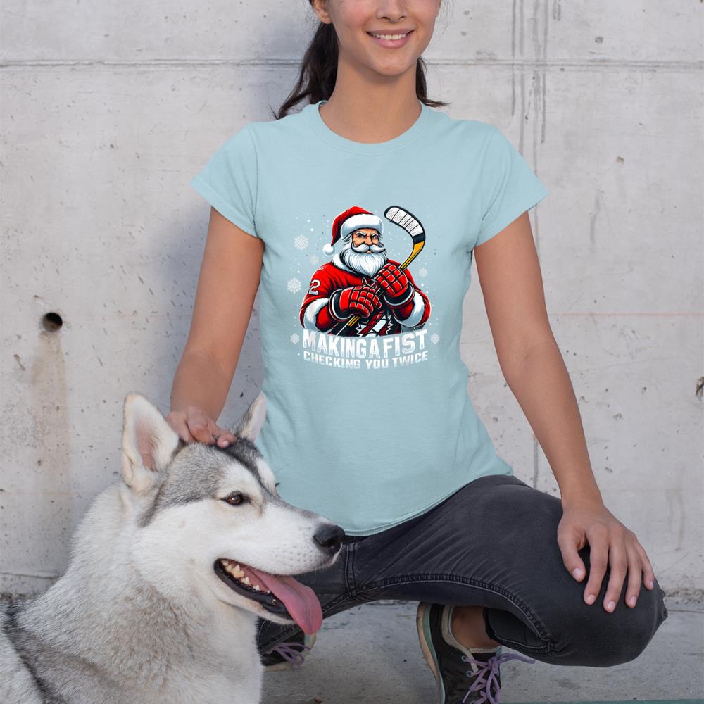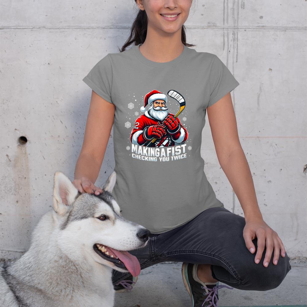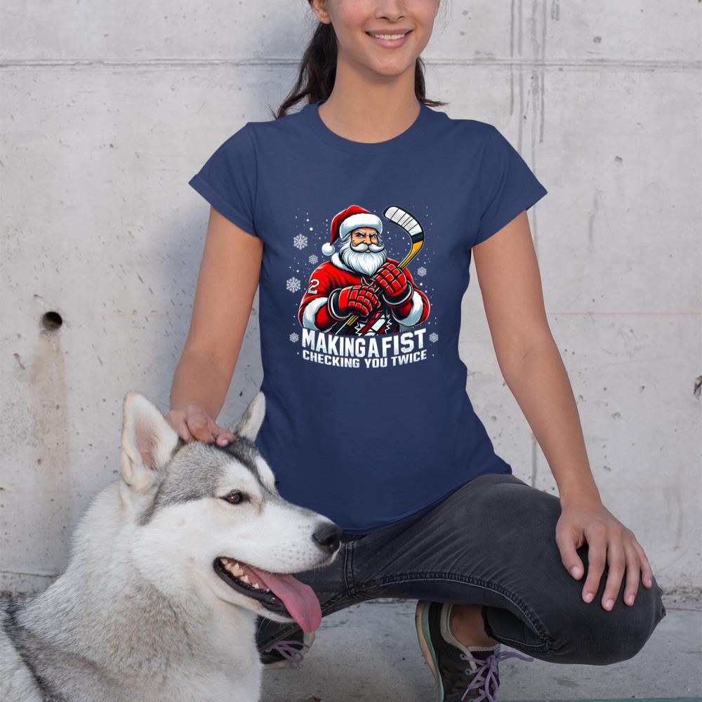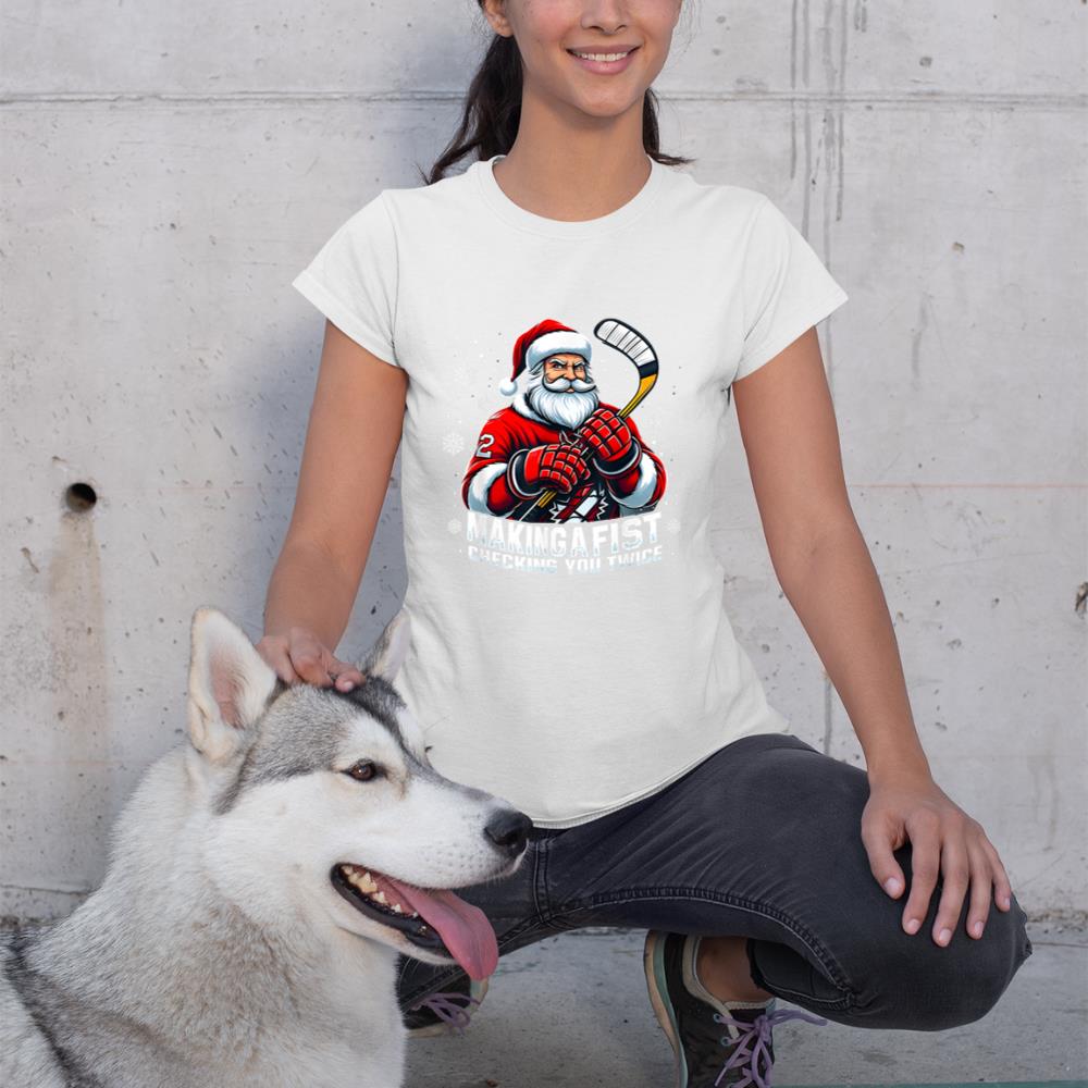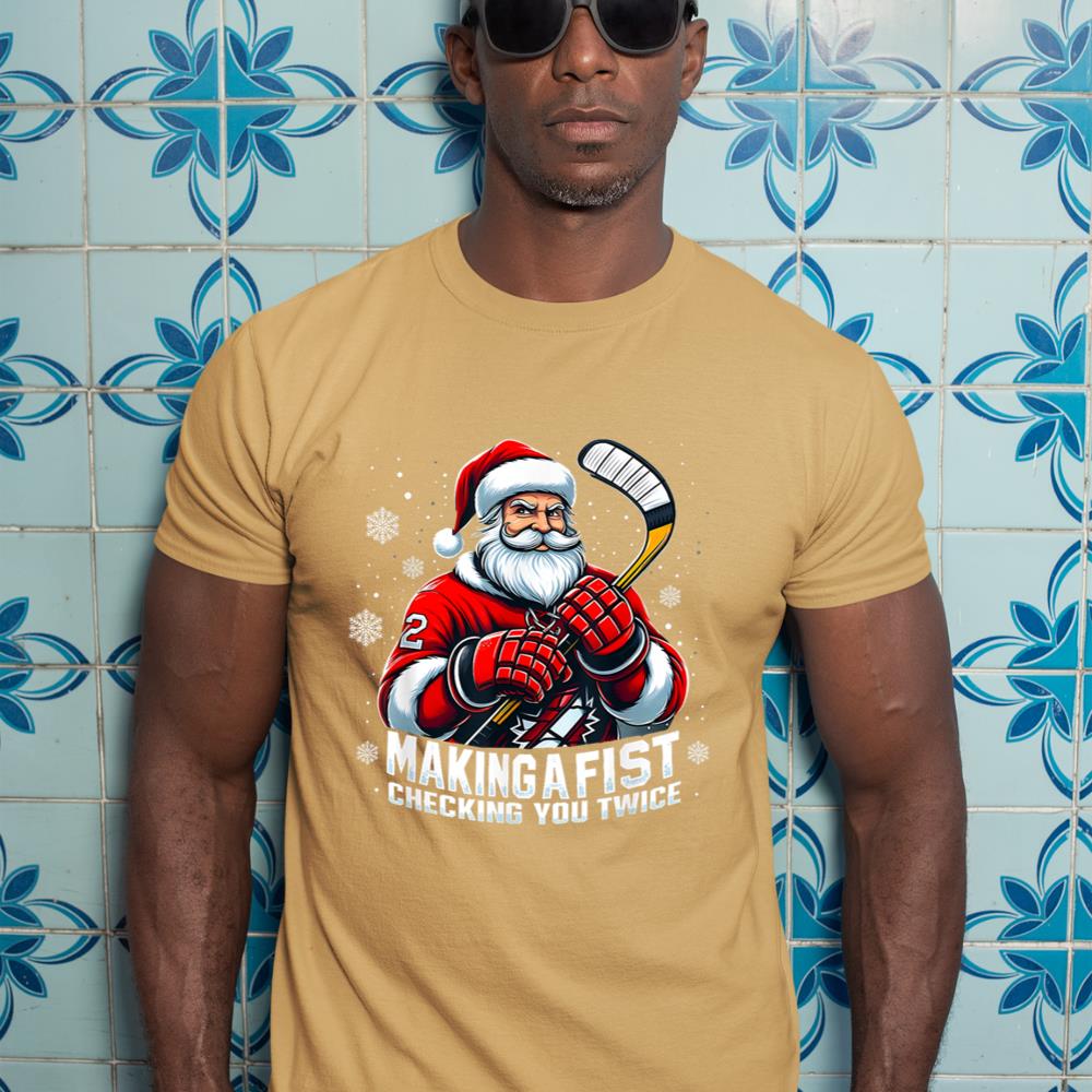 Xmas Santa Hockey Players Making A Fist Checking Your Twice T-Shirt