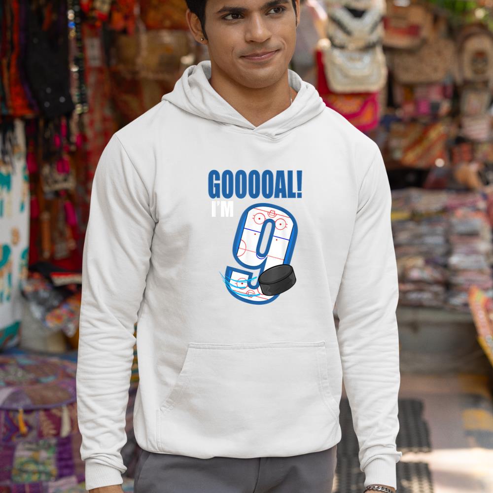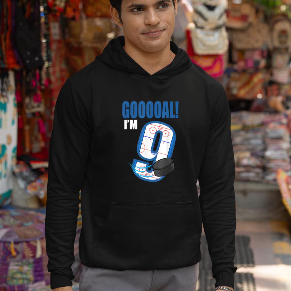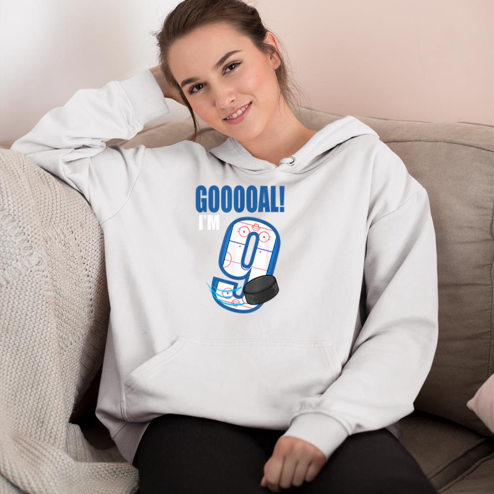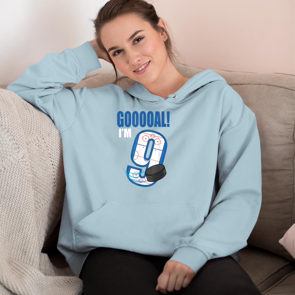 Hockey Player Goal Gooooal I’m 9 Ice Hockey Birthday Hoodie