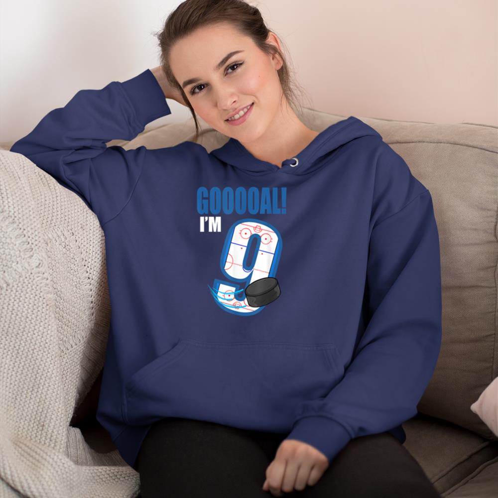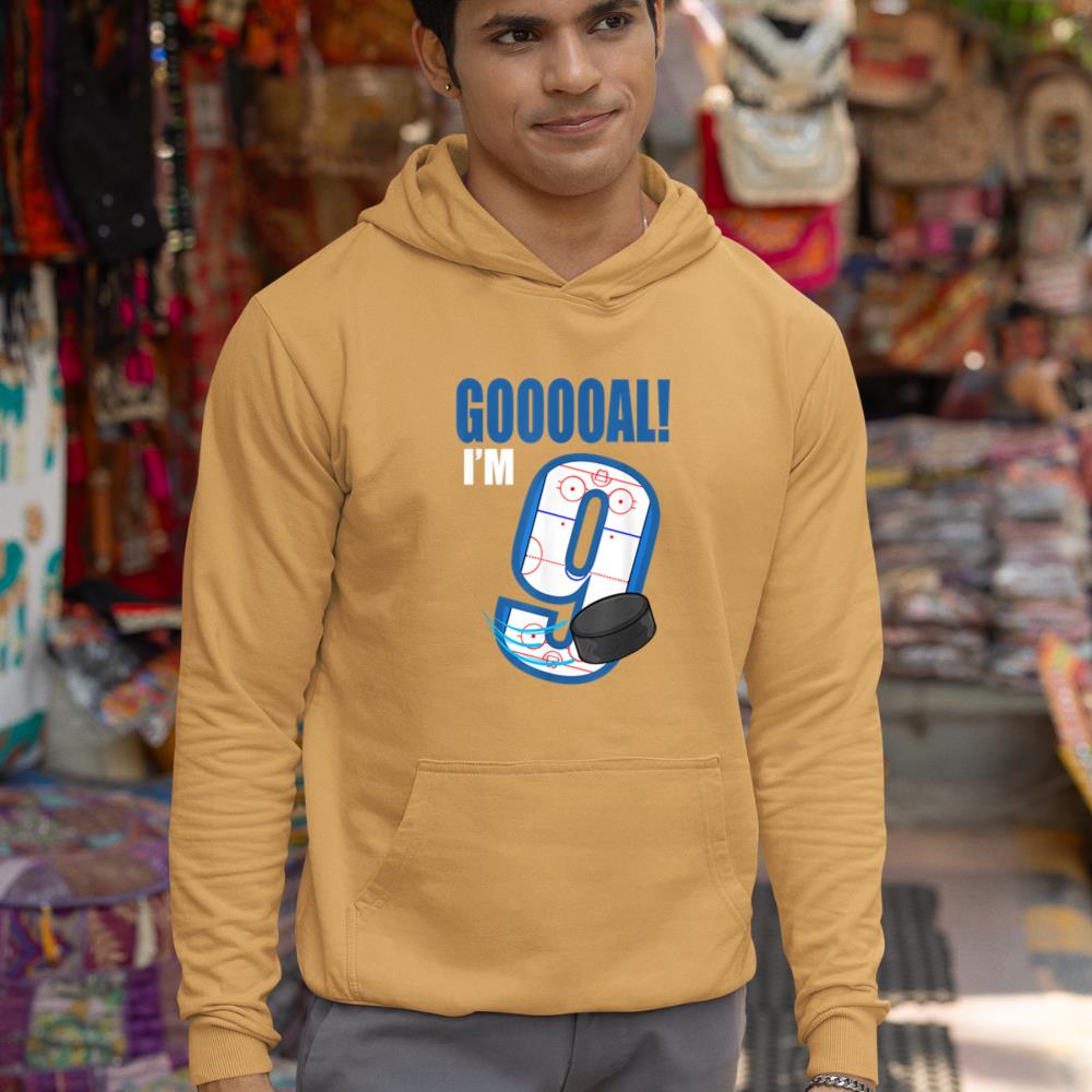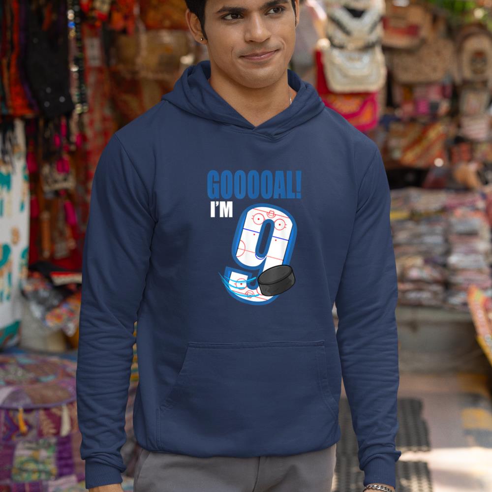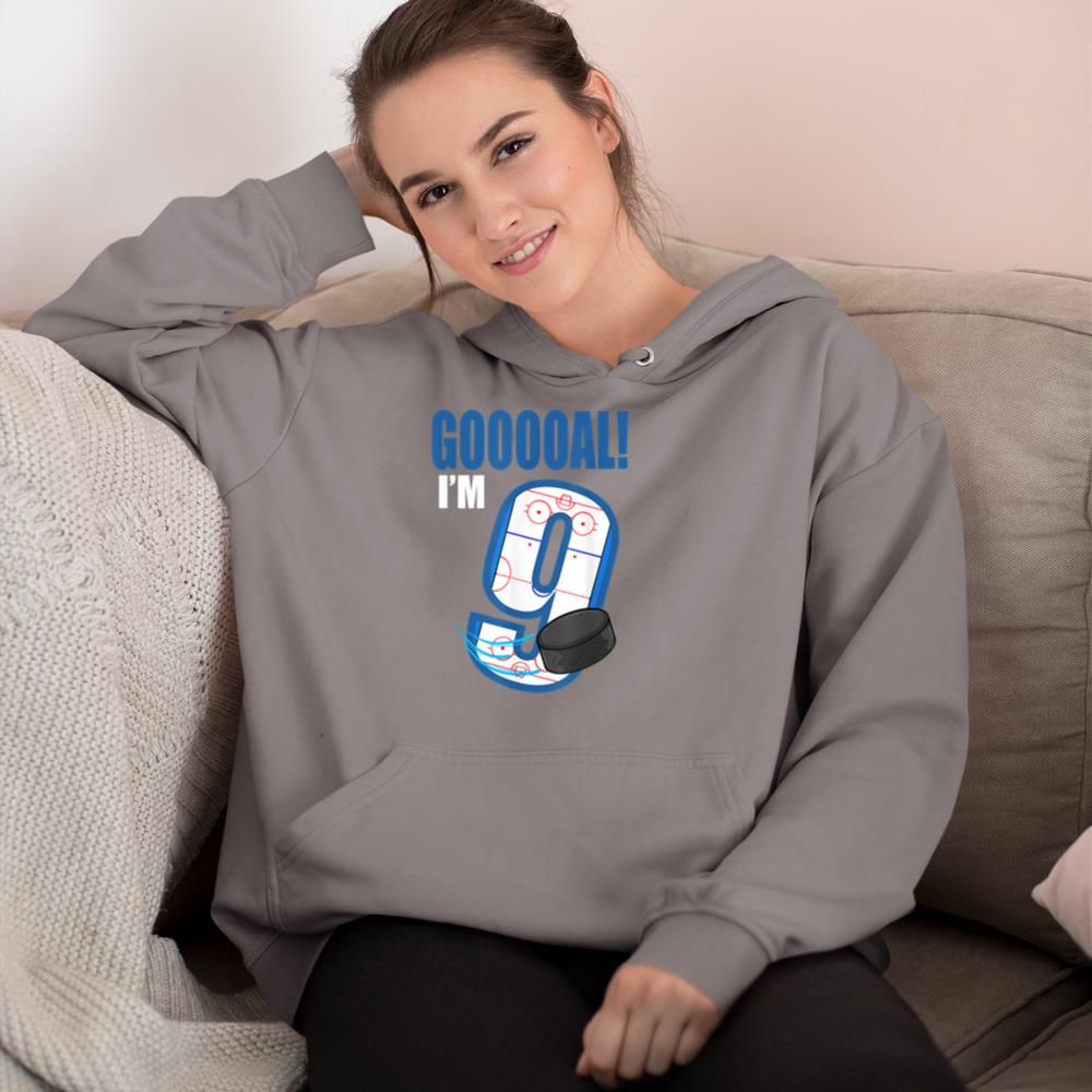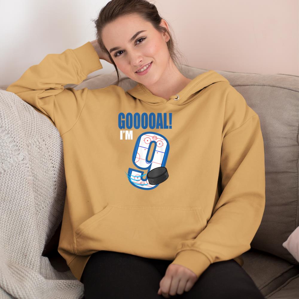 Hockey Player Goal Gooooal I’m 9 Ice Hockey Birthday Hoodie