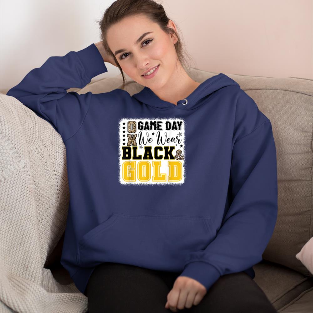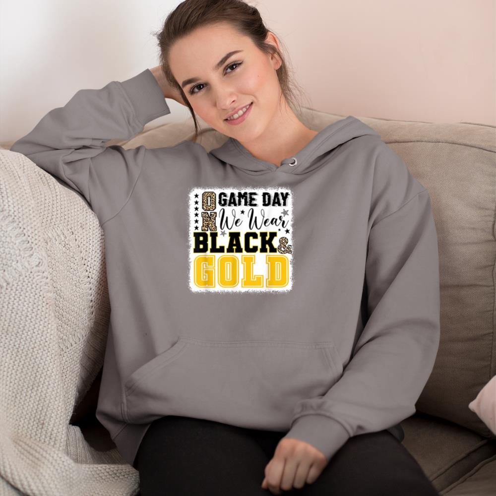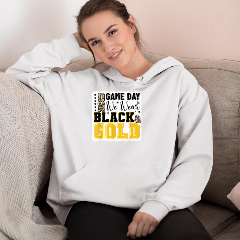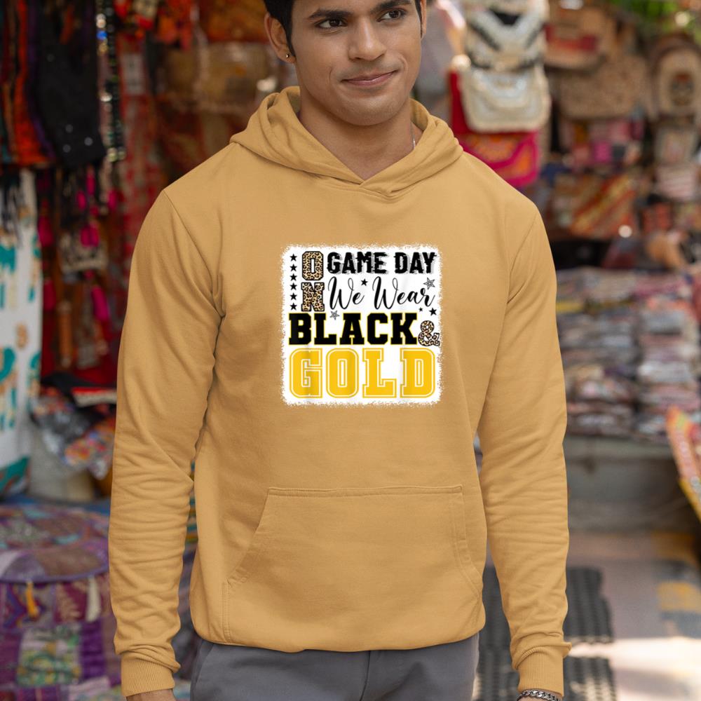 On Gameday Football We Wear Gold and Black Leopard Print Hoodie