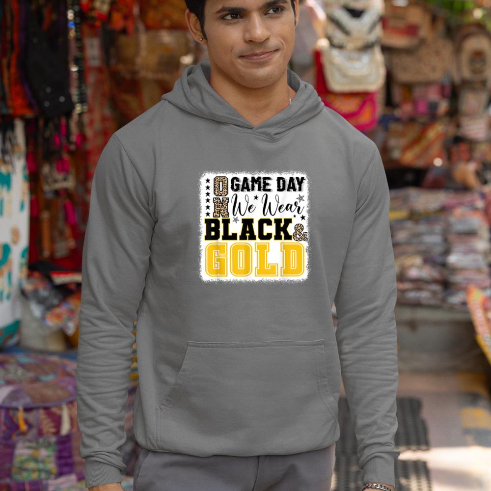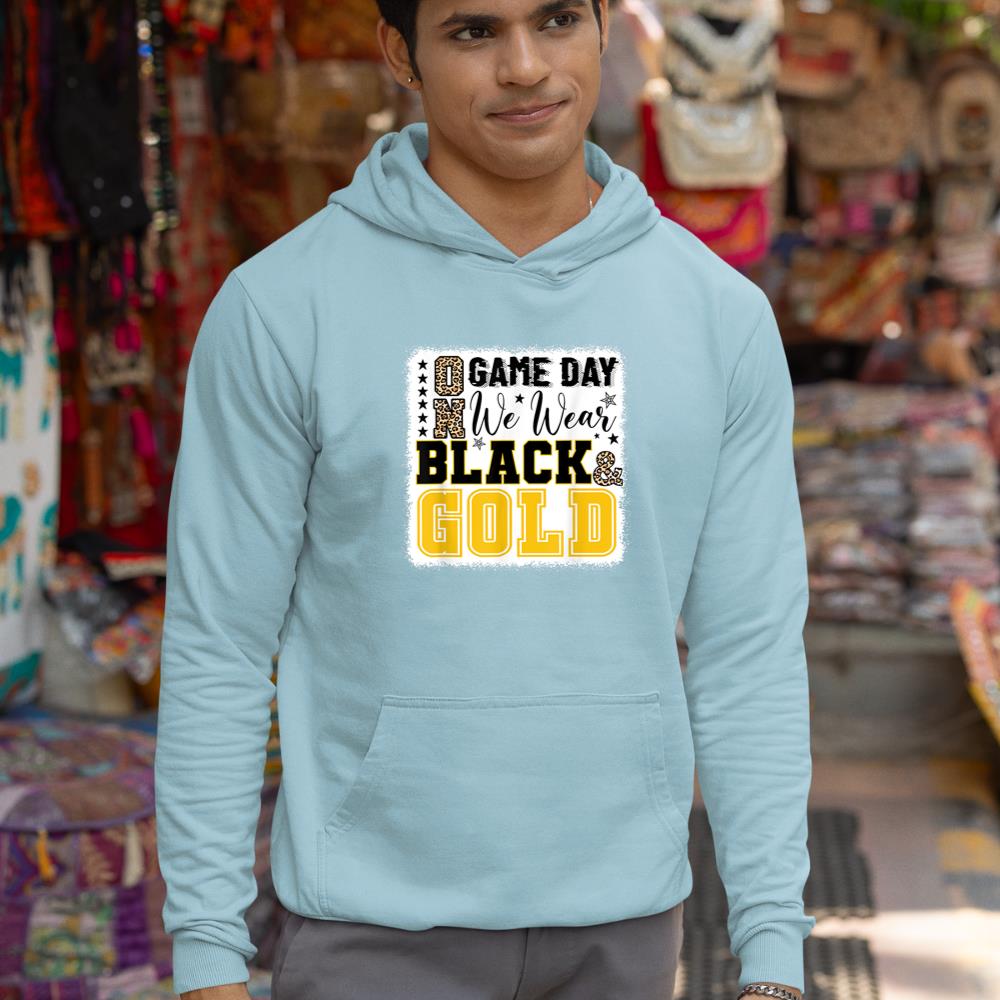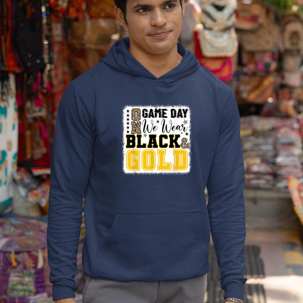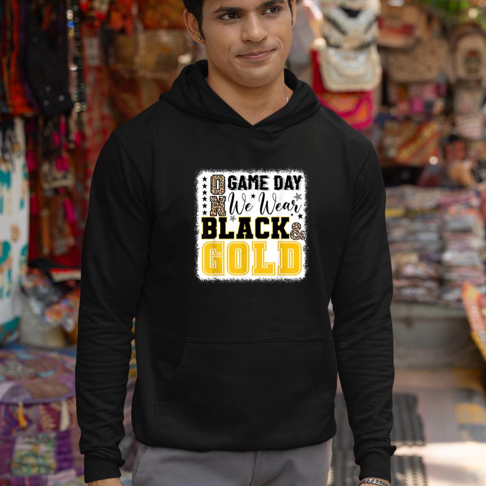 On Gameday Football We Wear Gold and Black Leopard Print Hoodie