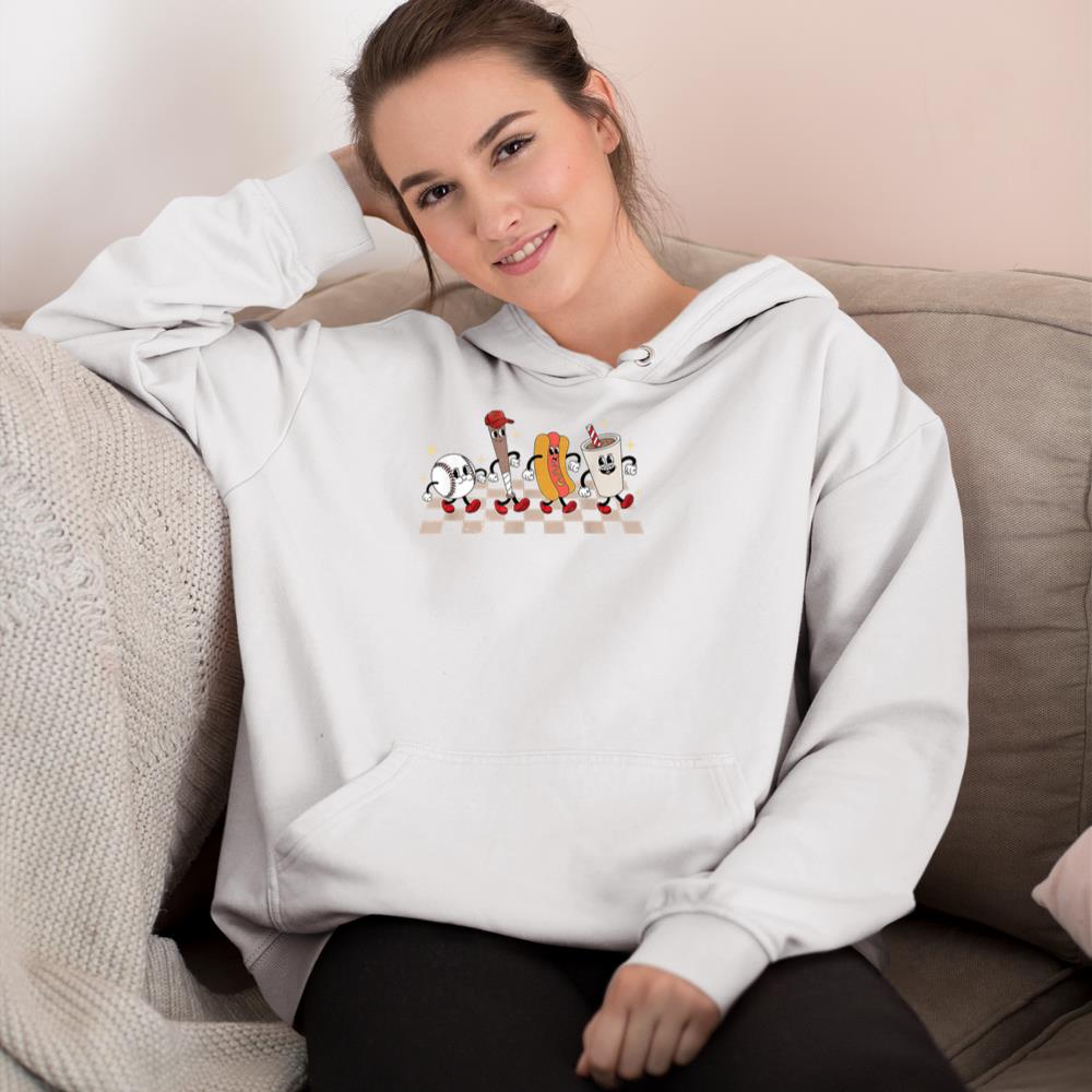 Retro Baseball Food and Drink Baseball Season Lover Funny Hoodie