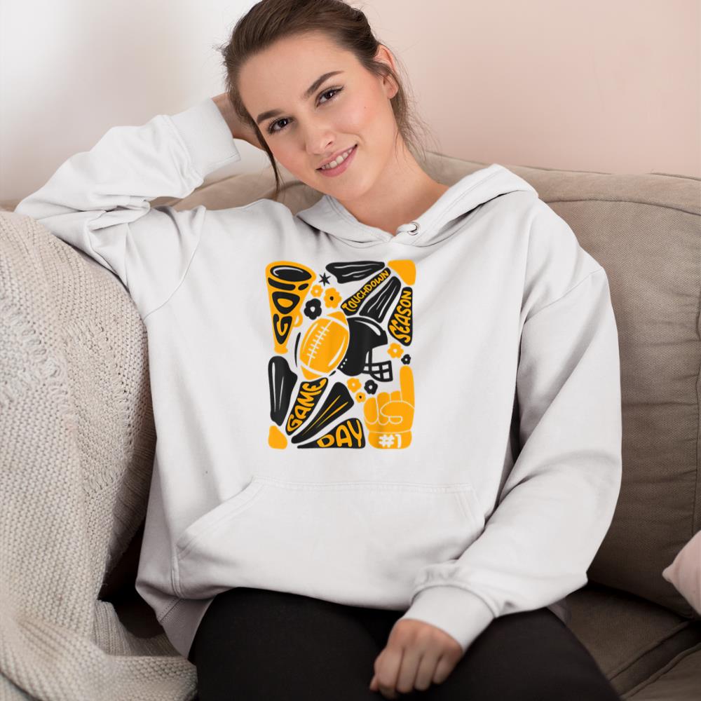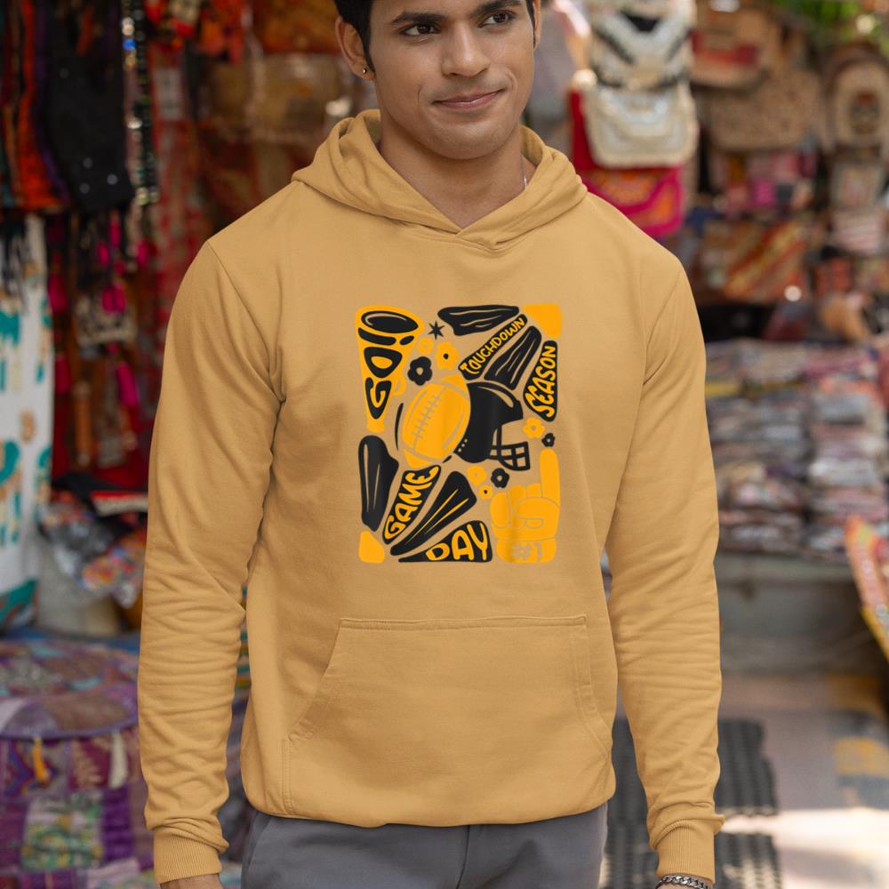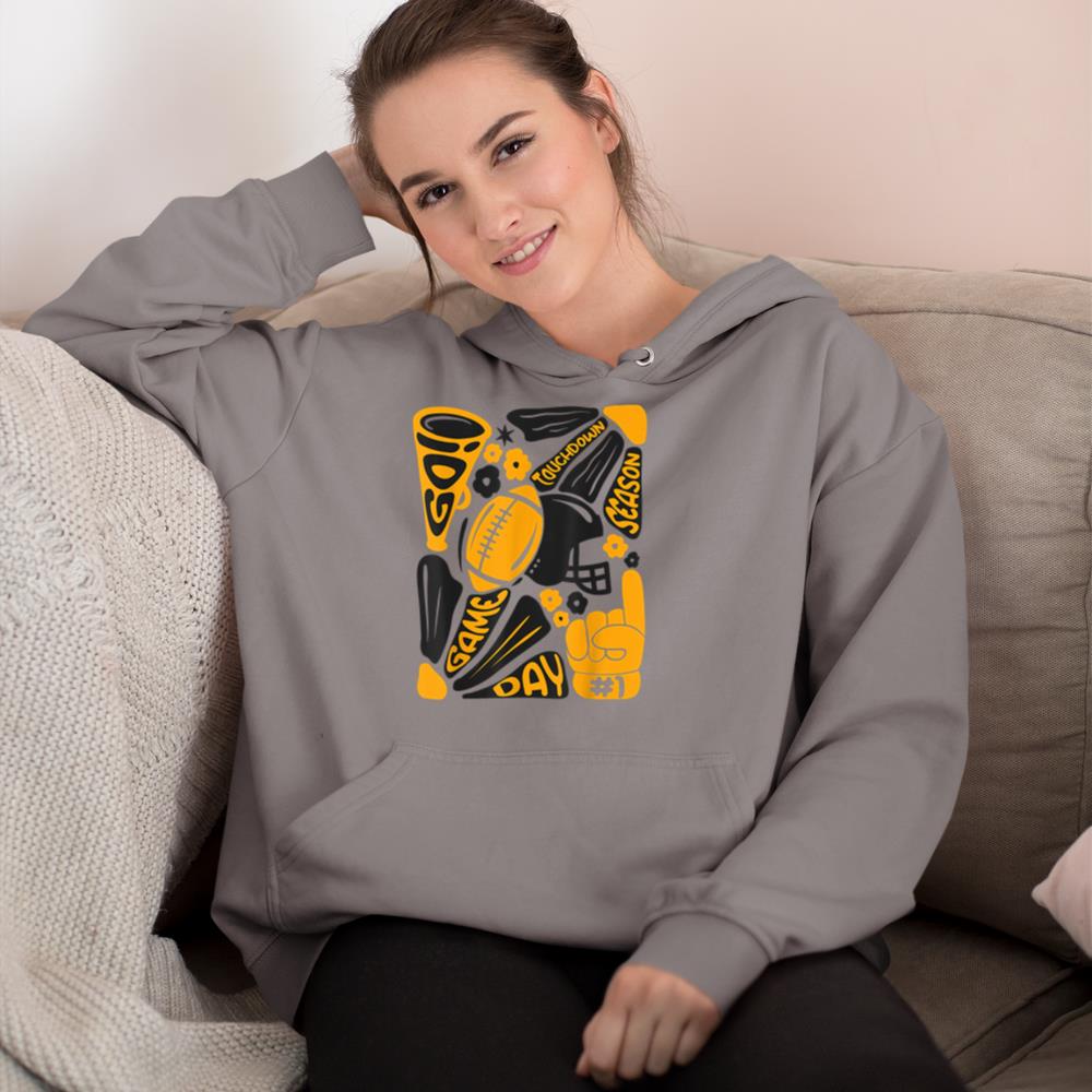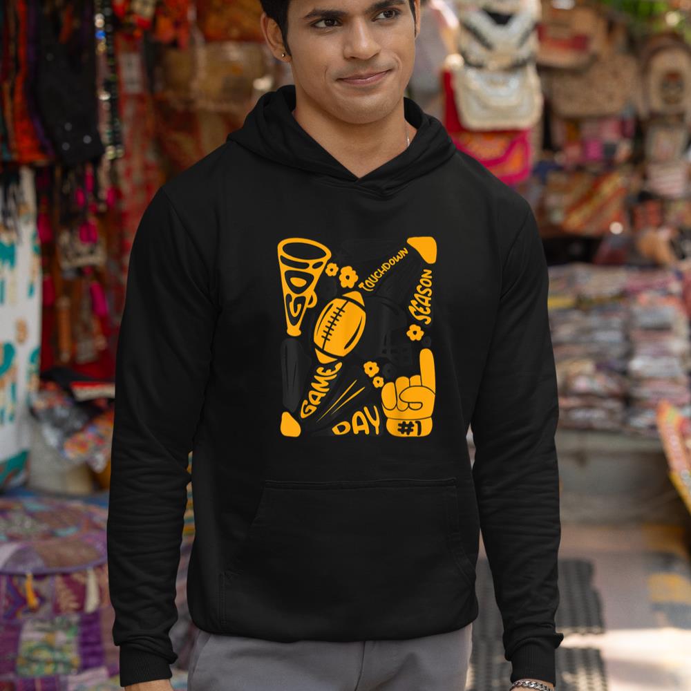 Touchdown Season American Football Game Day Yellow Black Hoodie
