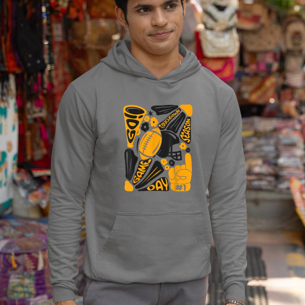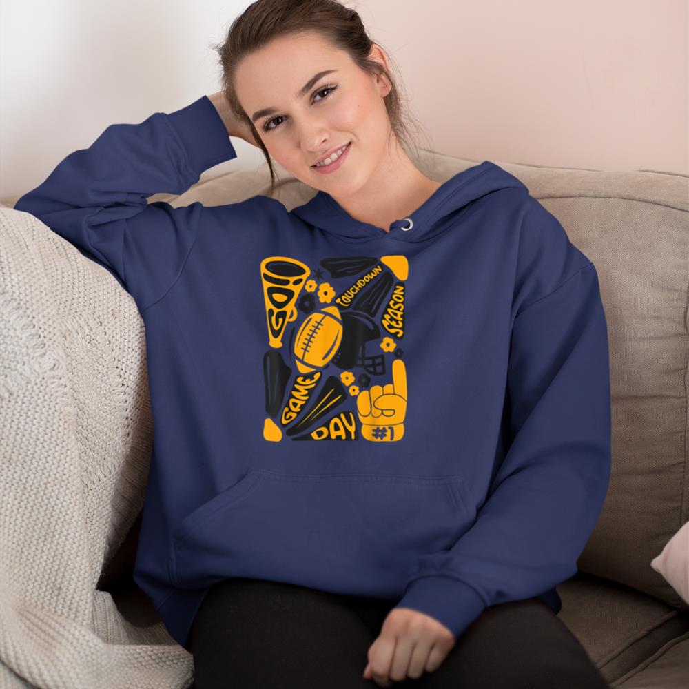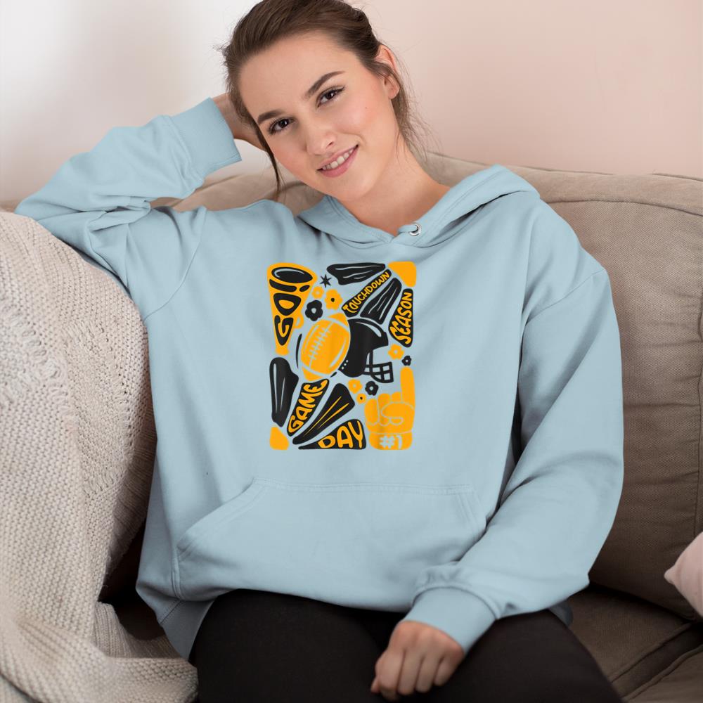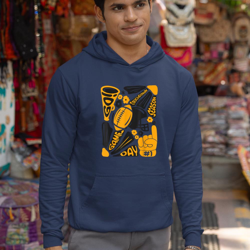 Touchdown Season American Football Game Day Yellow Black Hoodie
