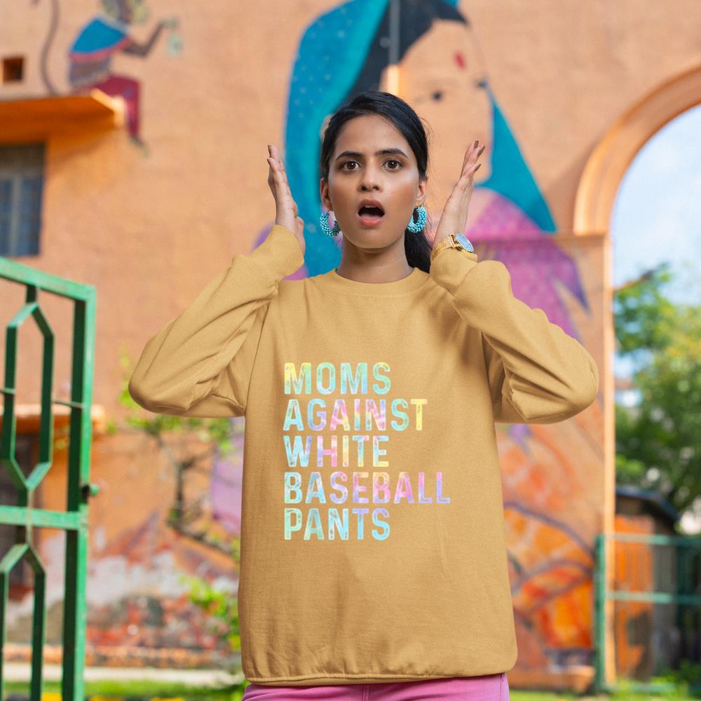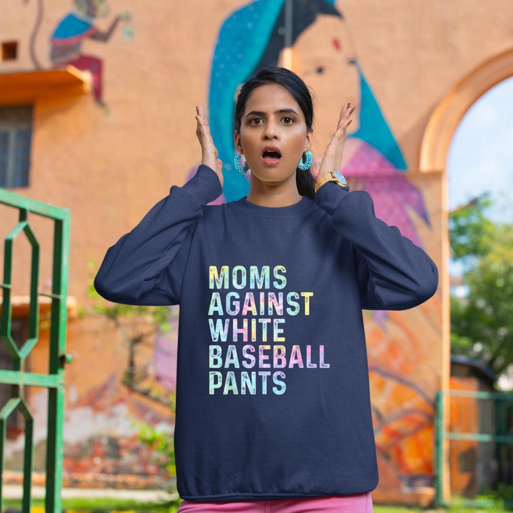 Moms Against White Baseball Pants Tie Dye Sweatshirt