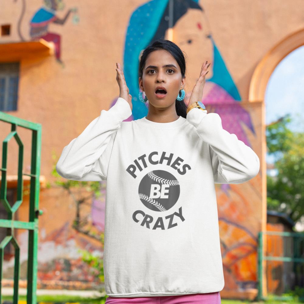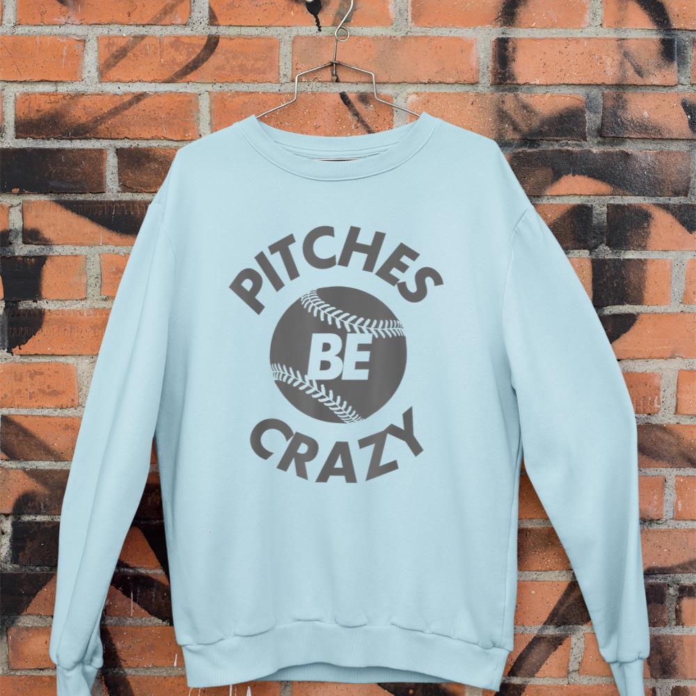 Pitches Be Crazy – Baseball Humor Mens Womens Youth Sweatshirt