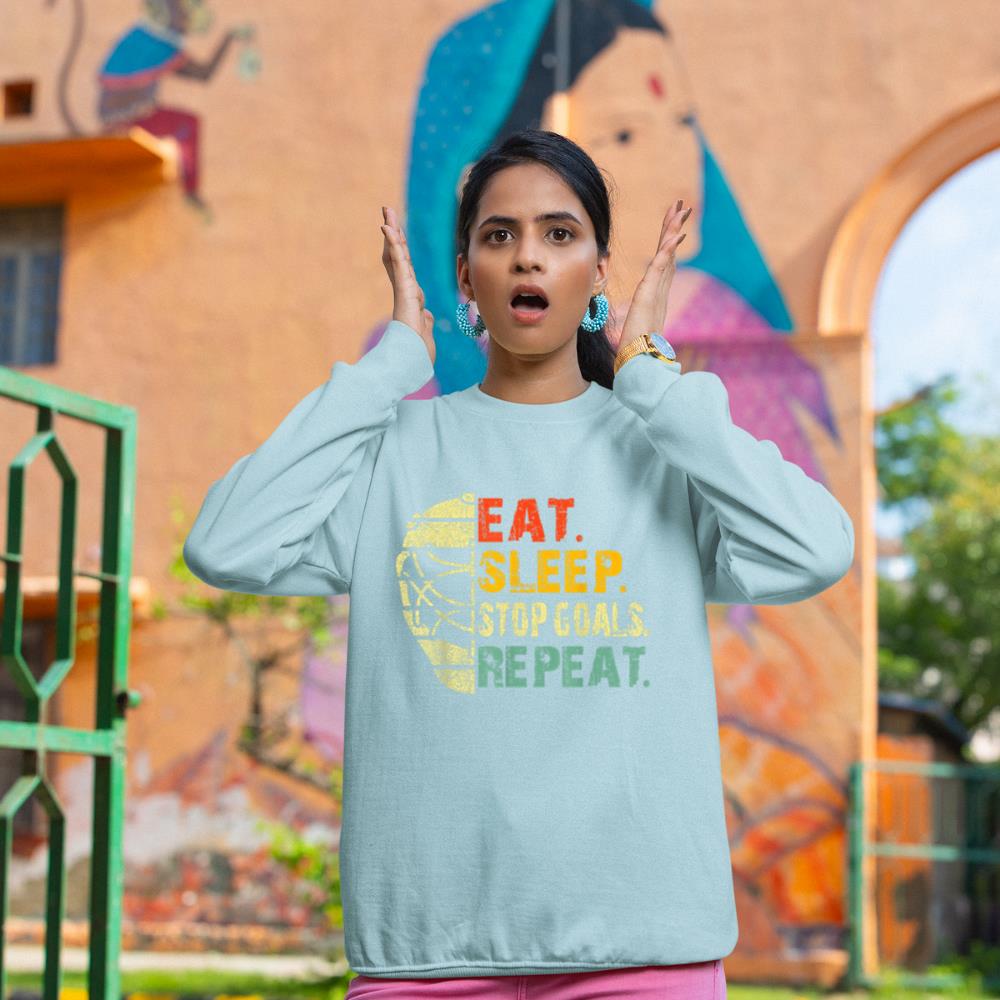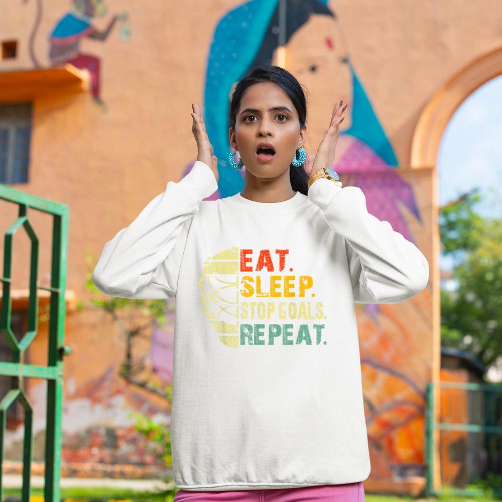 Retro Funny Eat Sleep Stop Goals Repeat Ice Hockey Goalie Sweatshirt