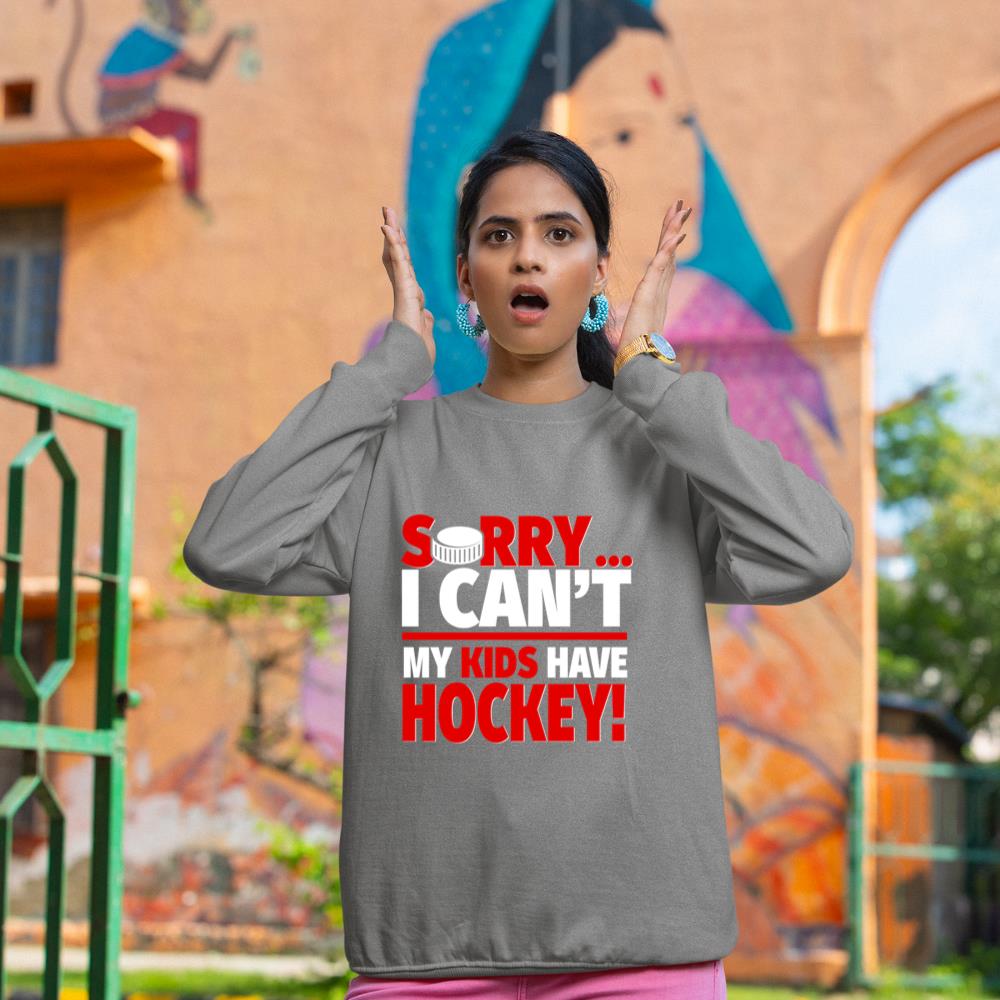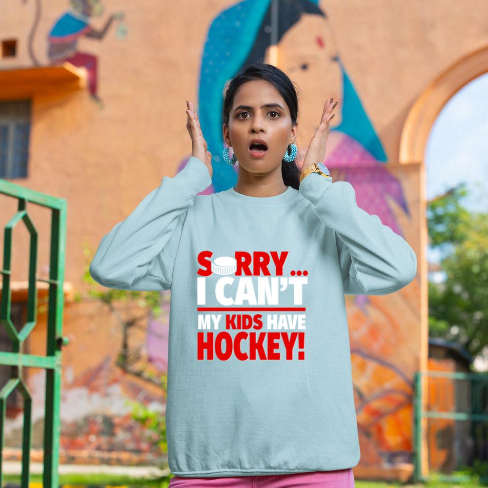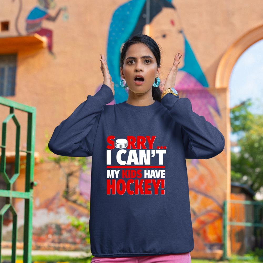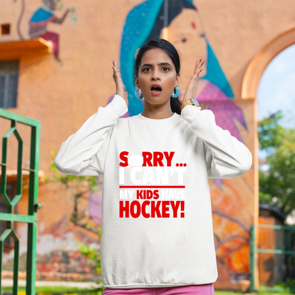 Sorry I Can’t My Kids Have Hockey – Funny Hockey Parent Long Sleeve Sweatshirt