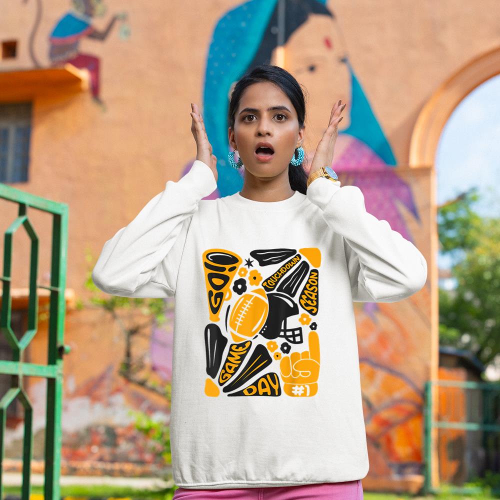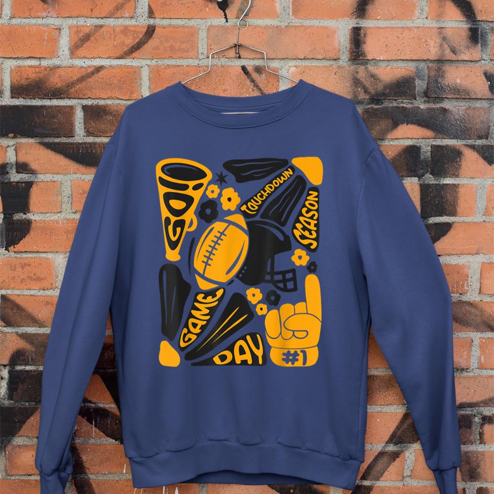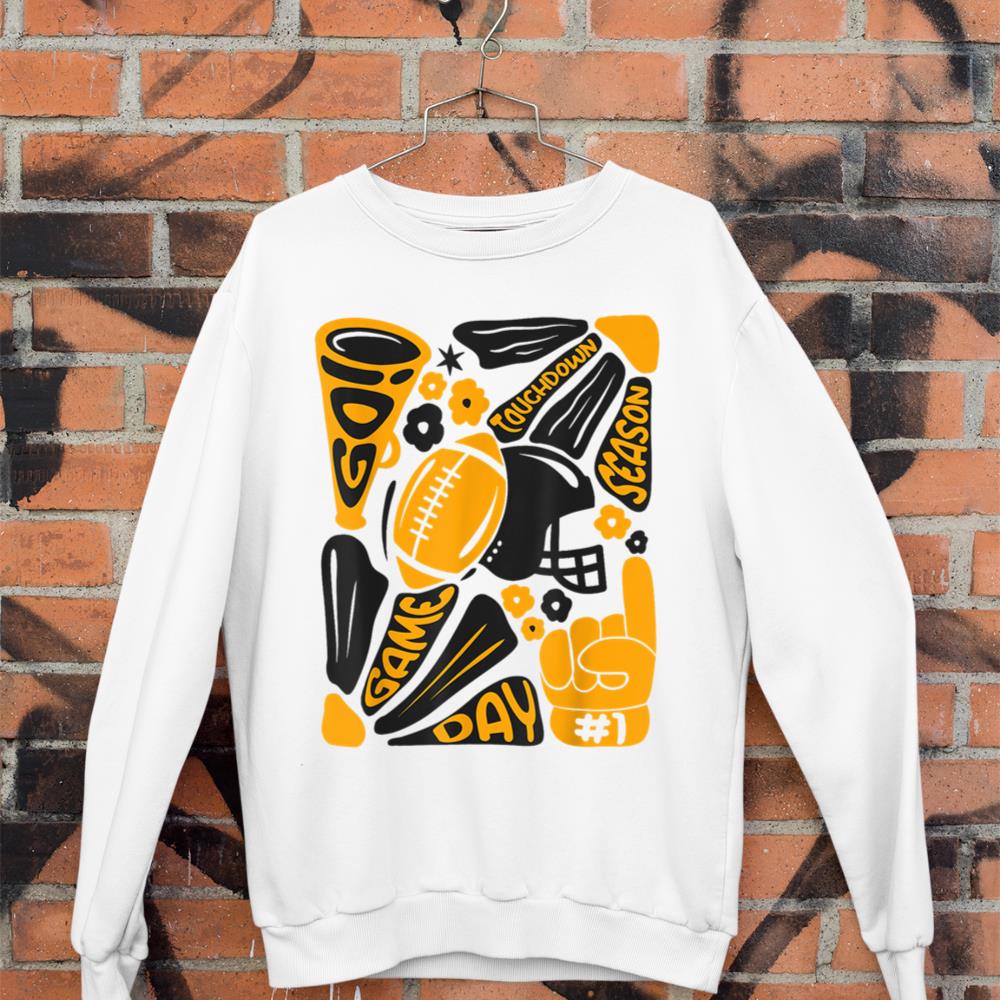Touchdown Season American Football Game Day Yellow Black Sweatshirt