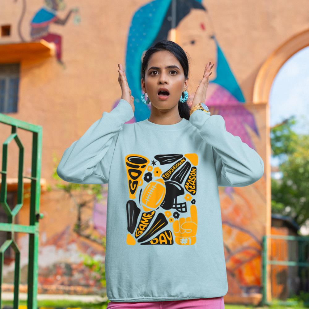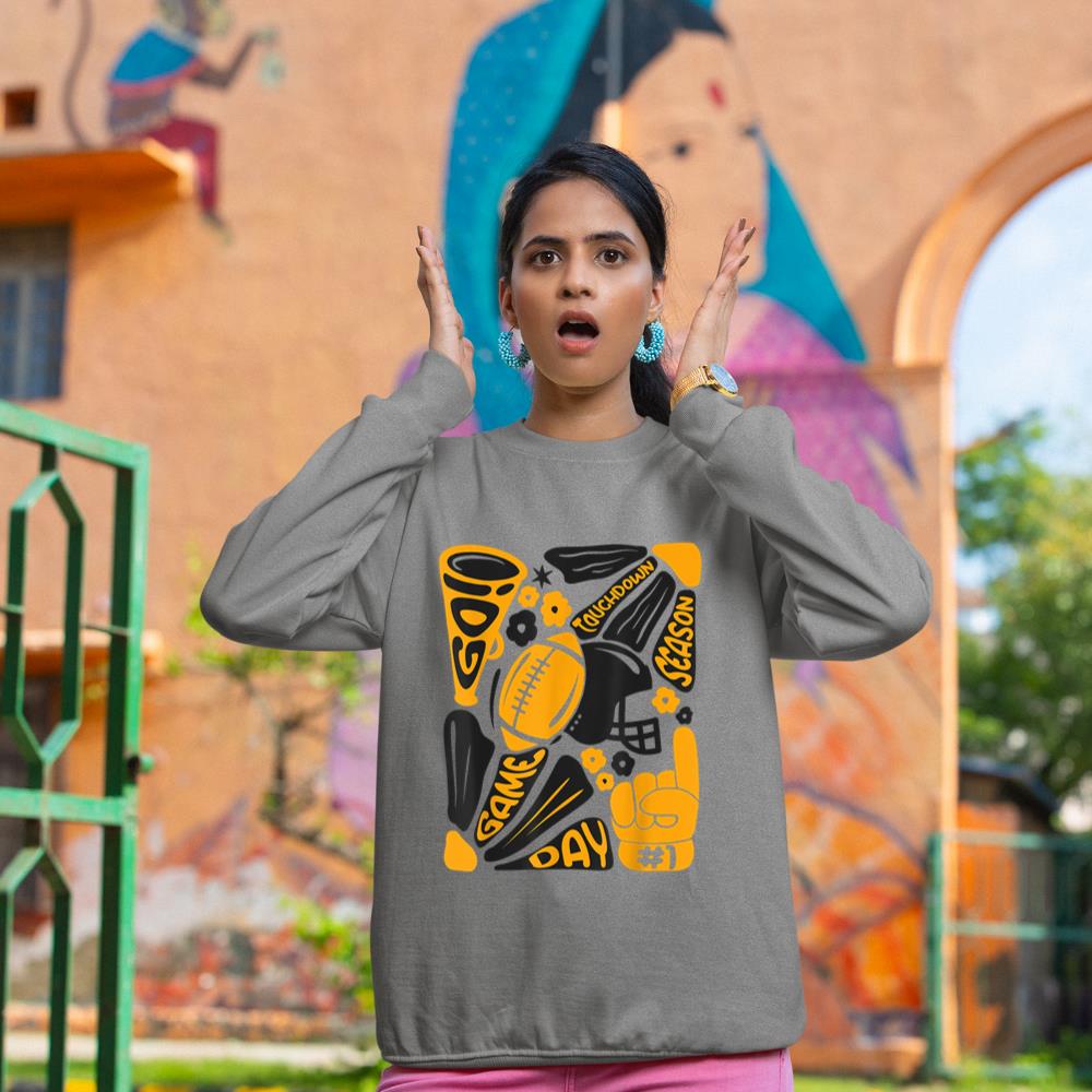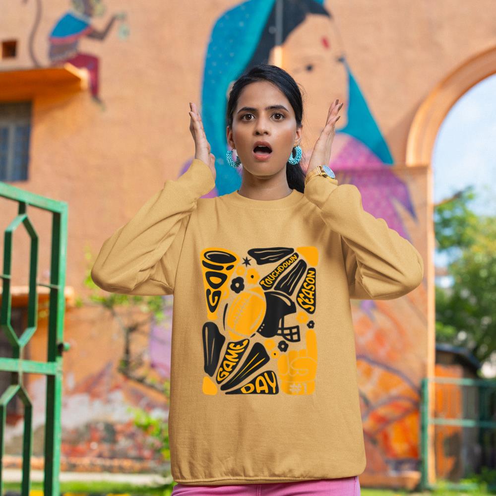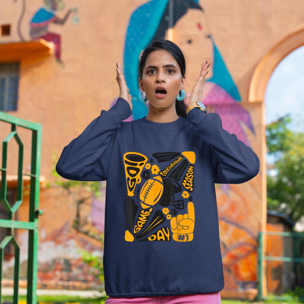 Touchdown Season American Football Game Day Yellow Black Sweatshirt