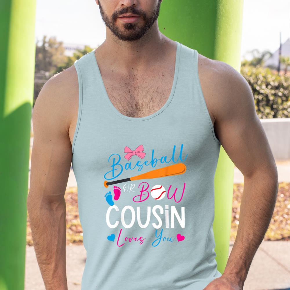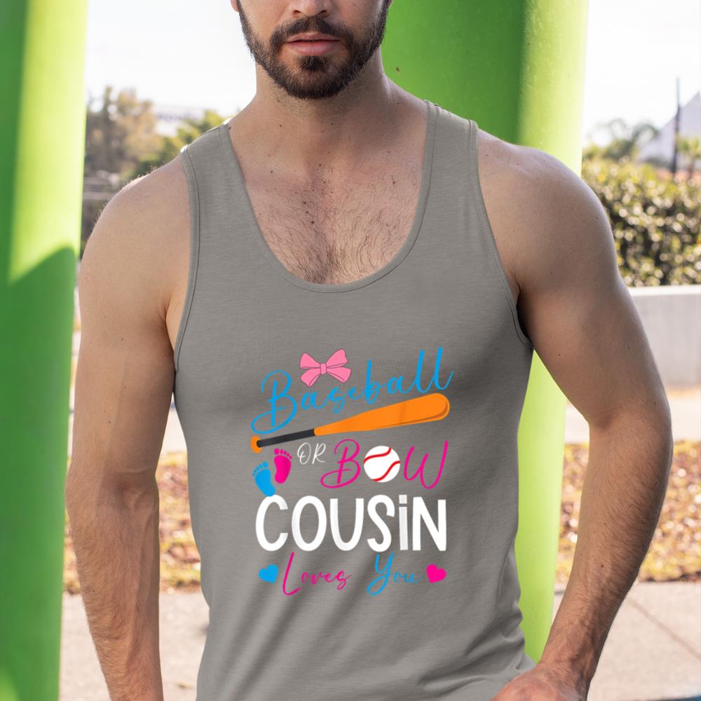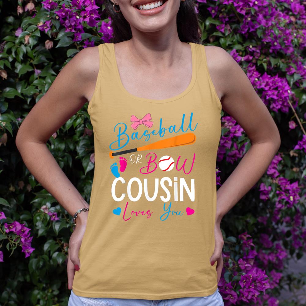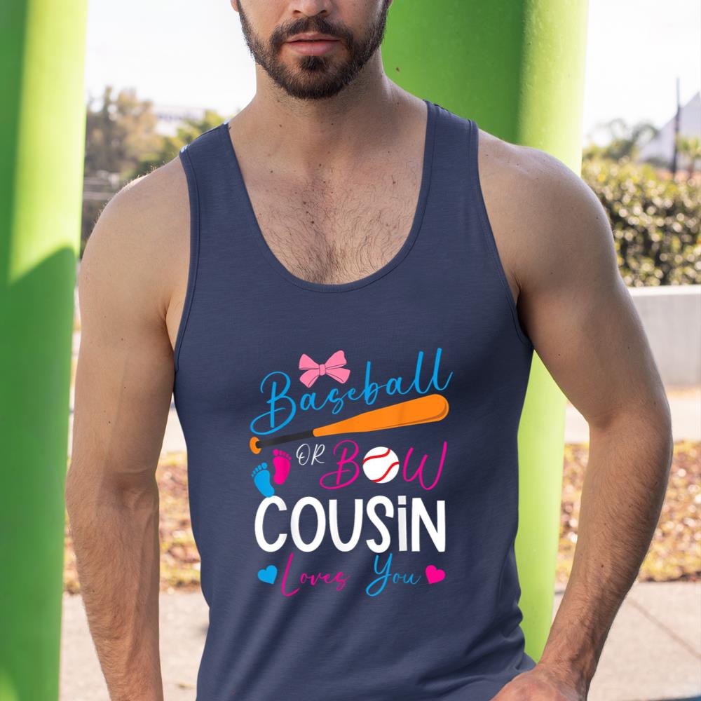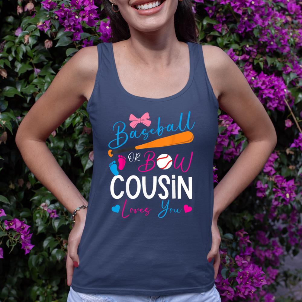 Baseball or Bow Cousin Loves You Baseball Gender Reveal Tank Top