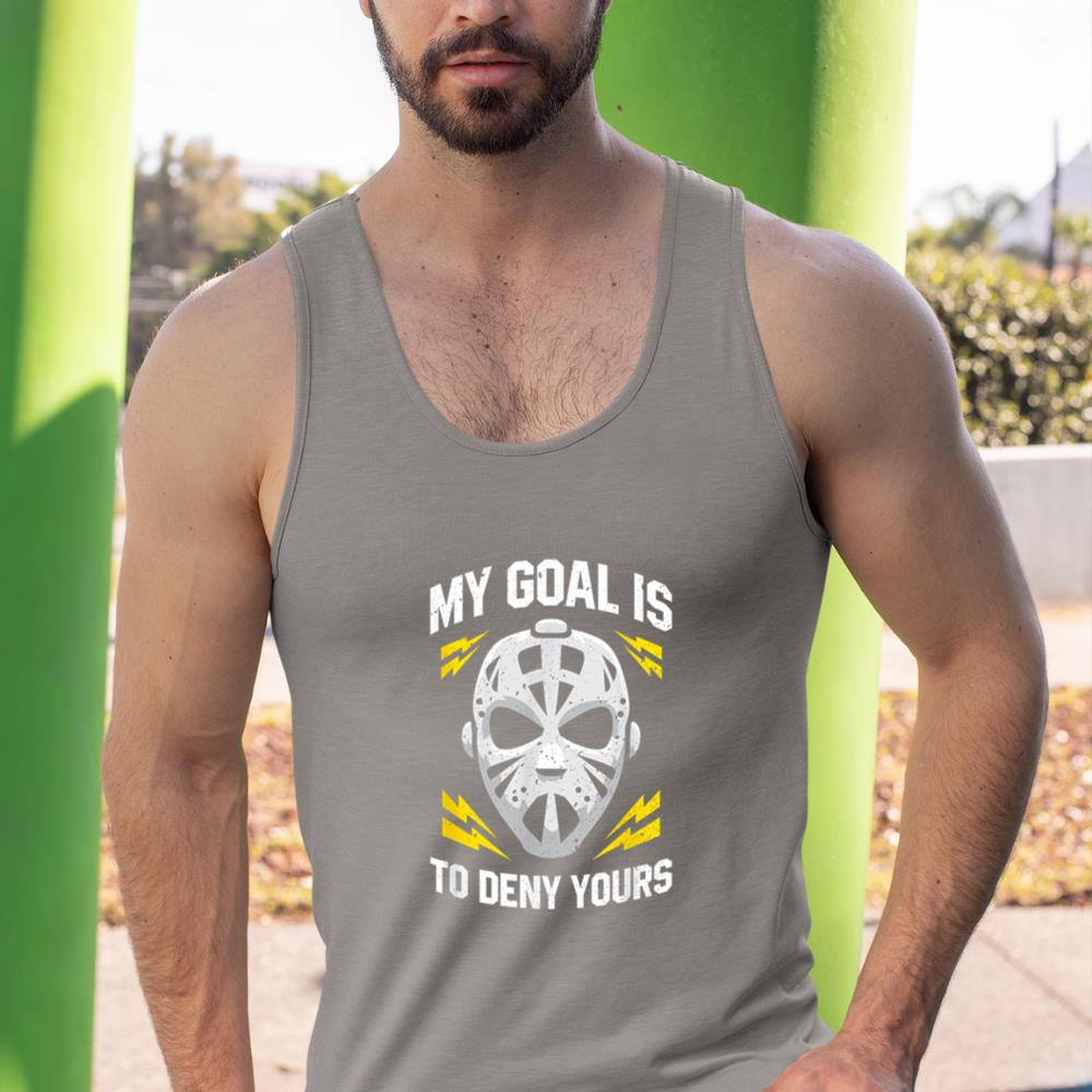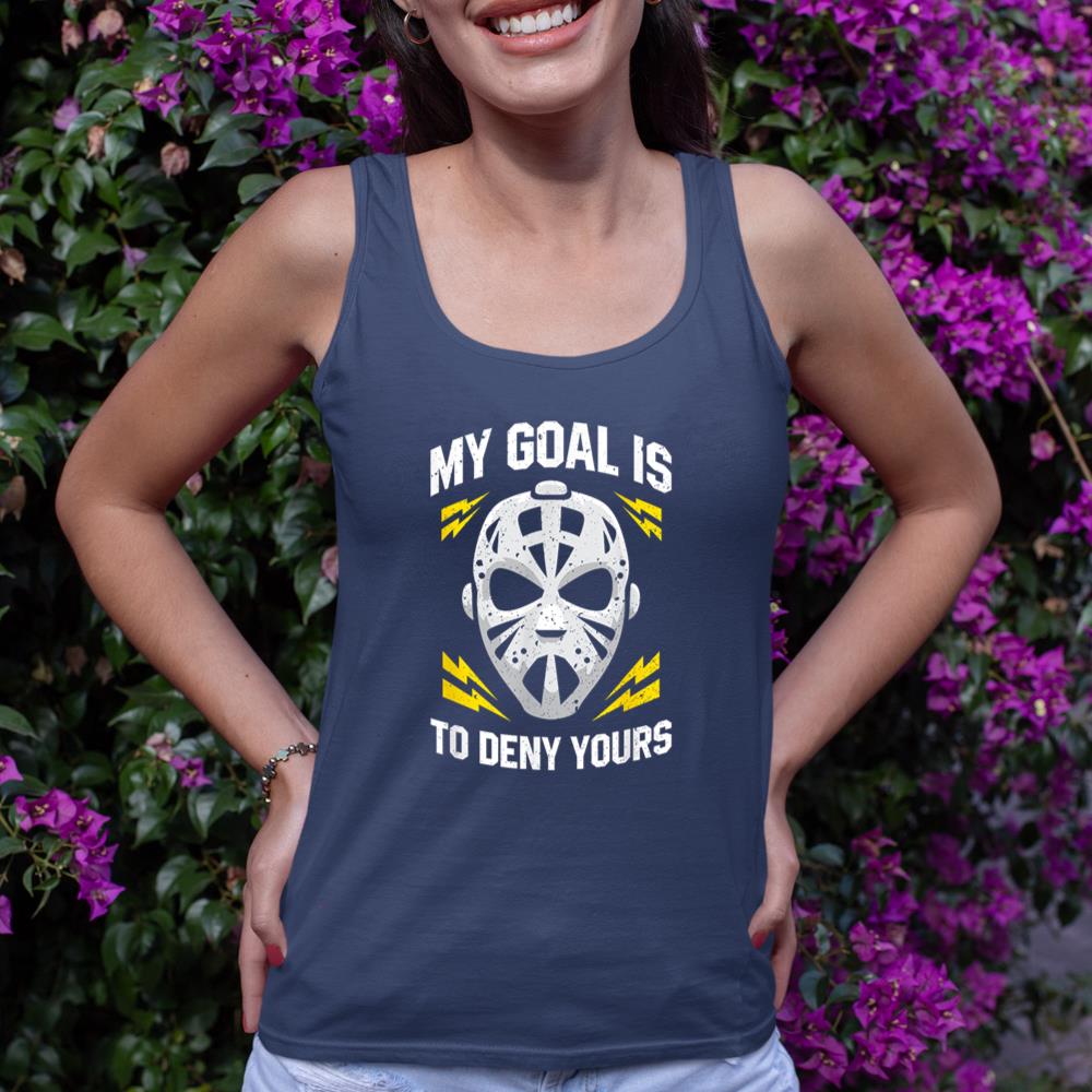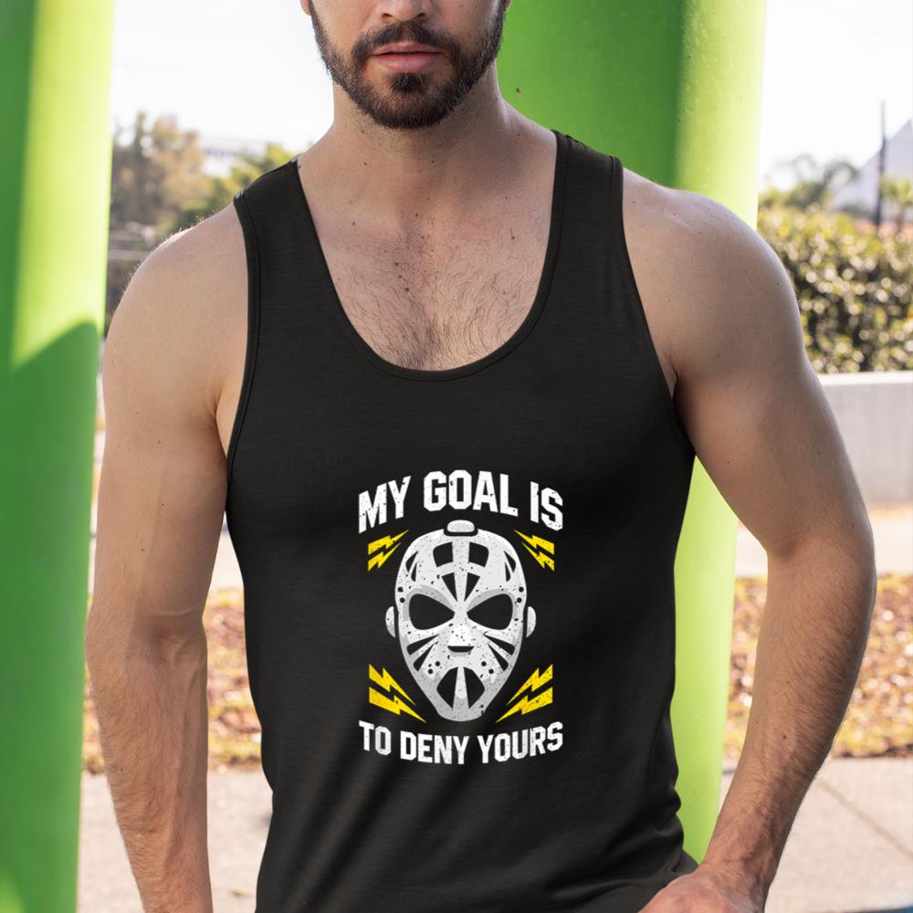 Funny Ice Hockey Goalie My Goal Is To Deny Yours Hockey Tank Top