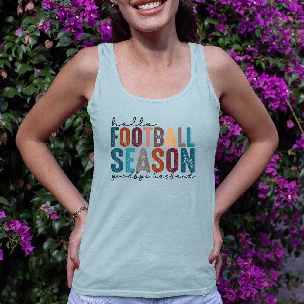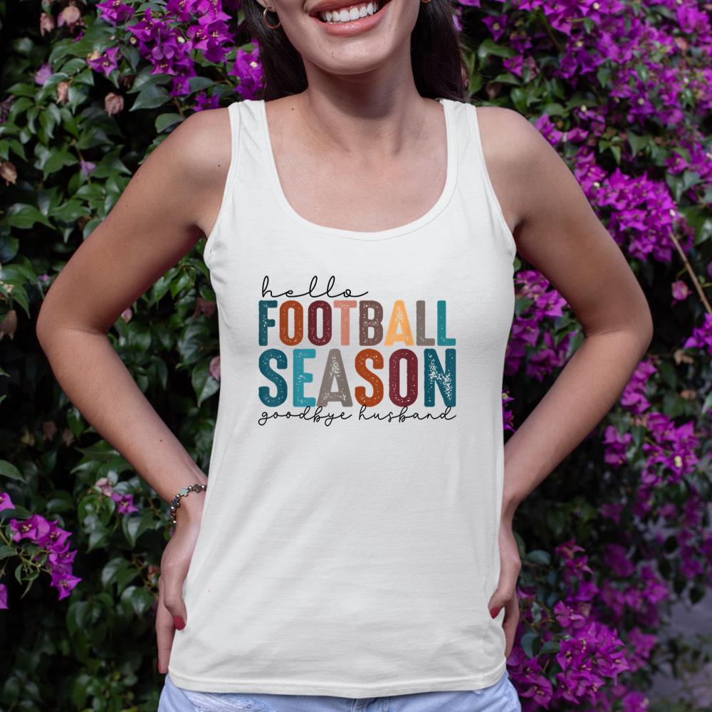 Hello Football Season Goodbye Husband Vintage Football Wife Tank Top