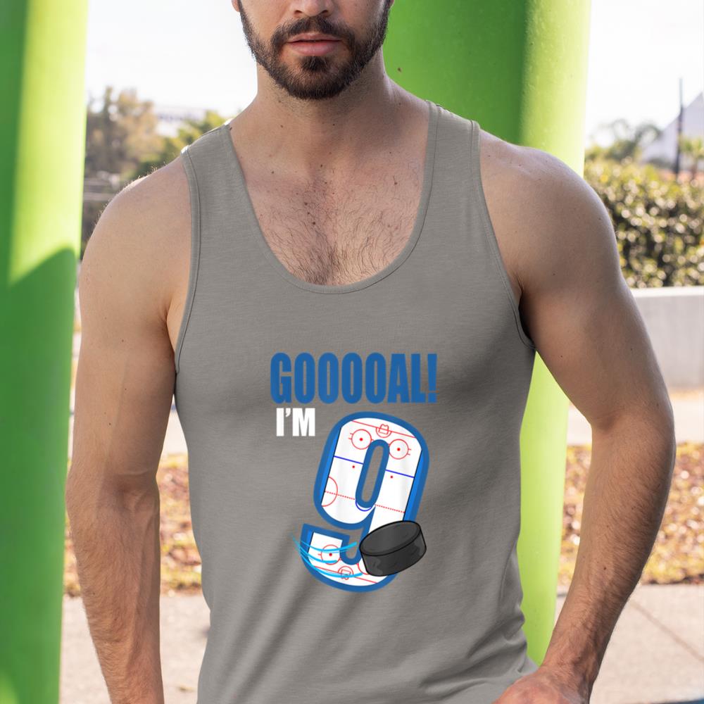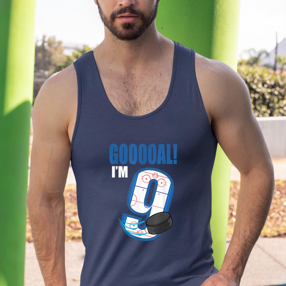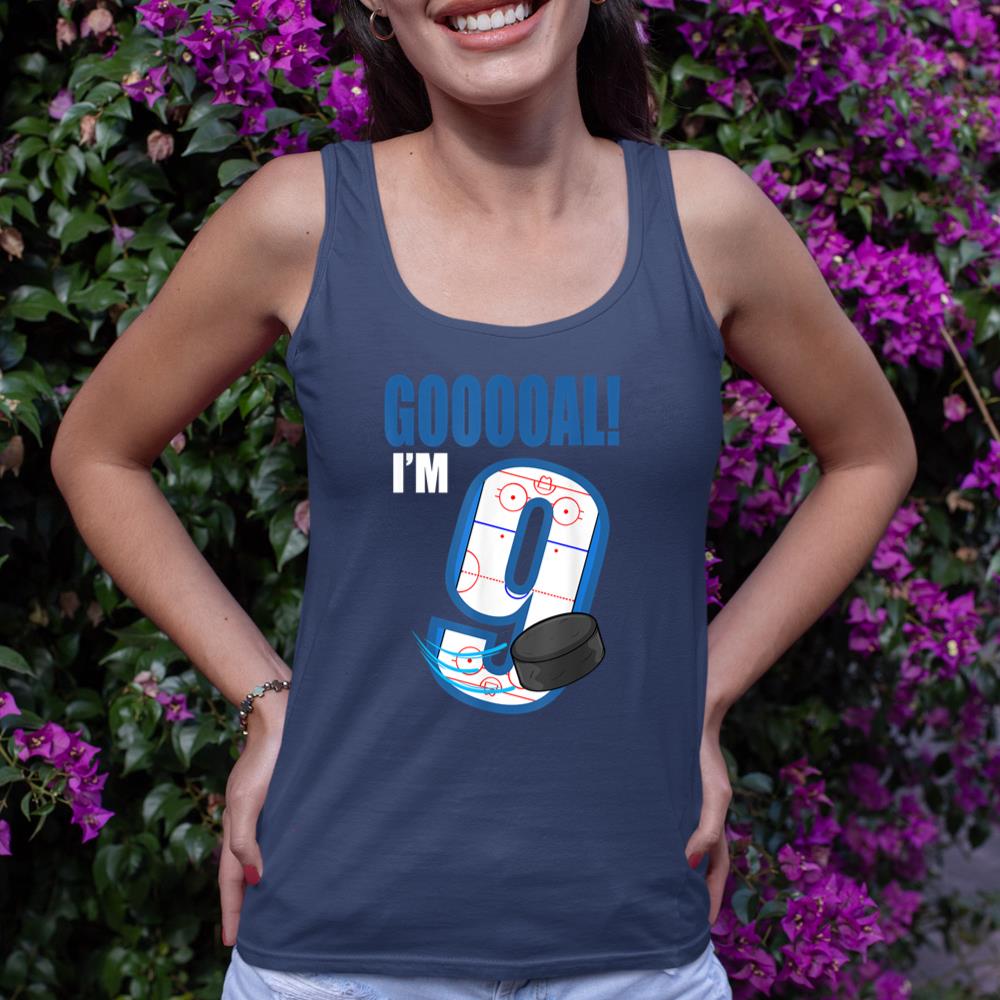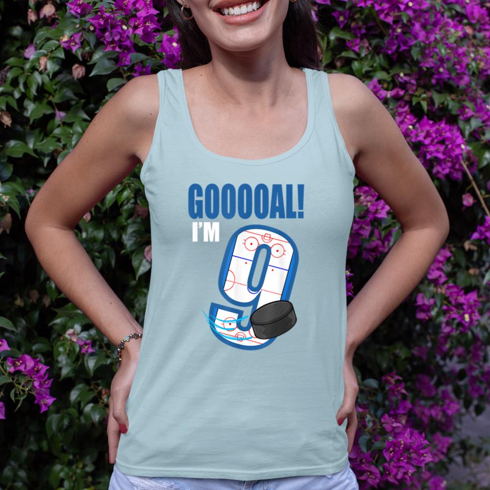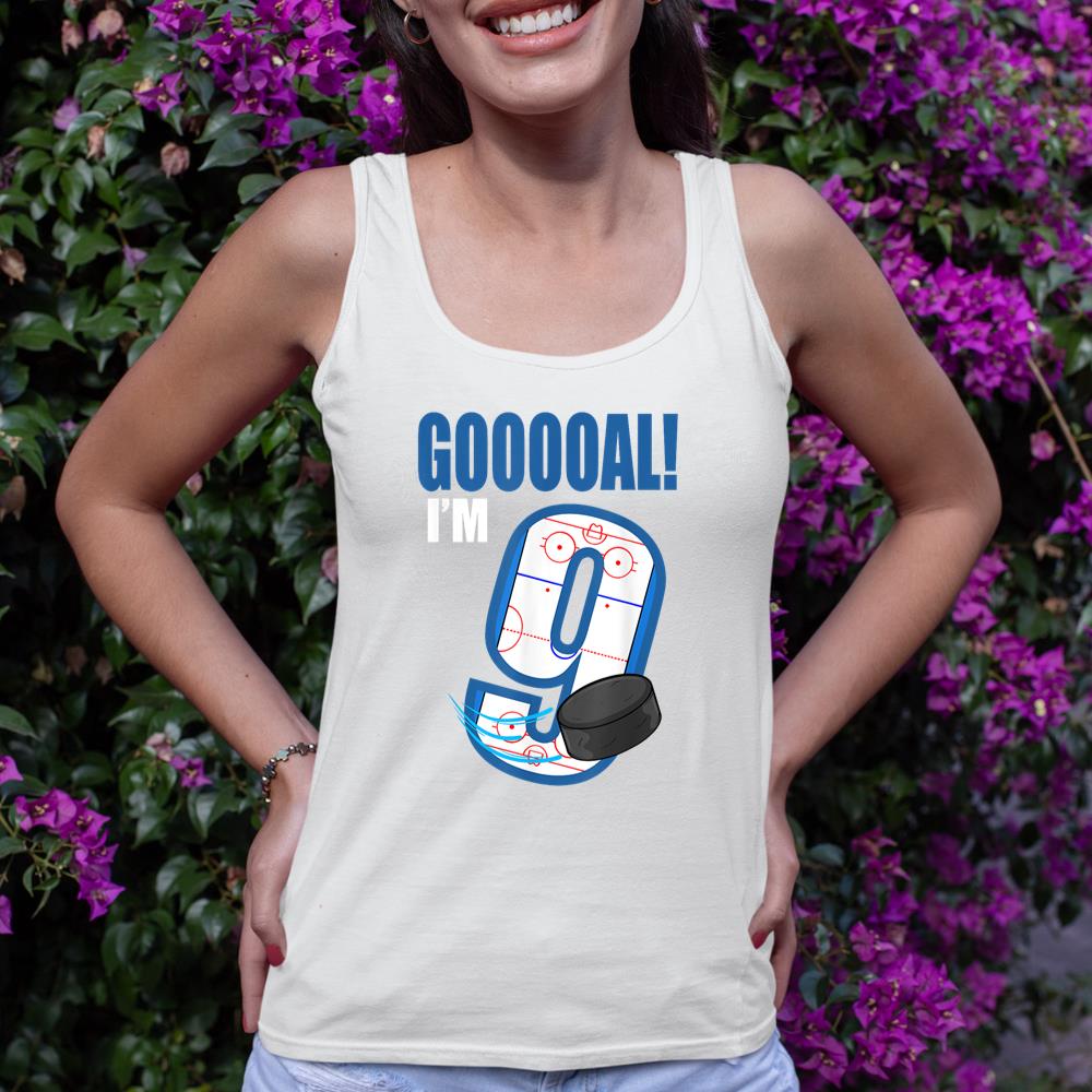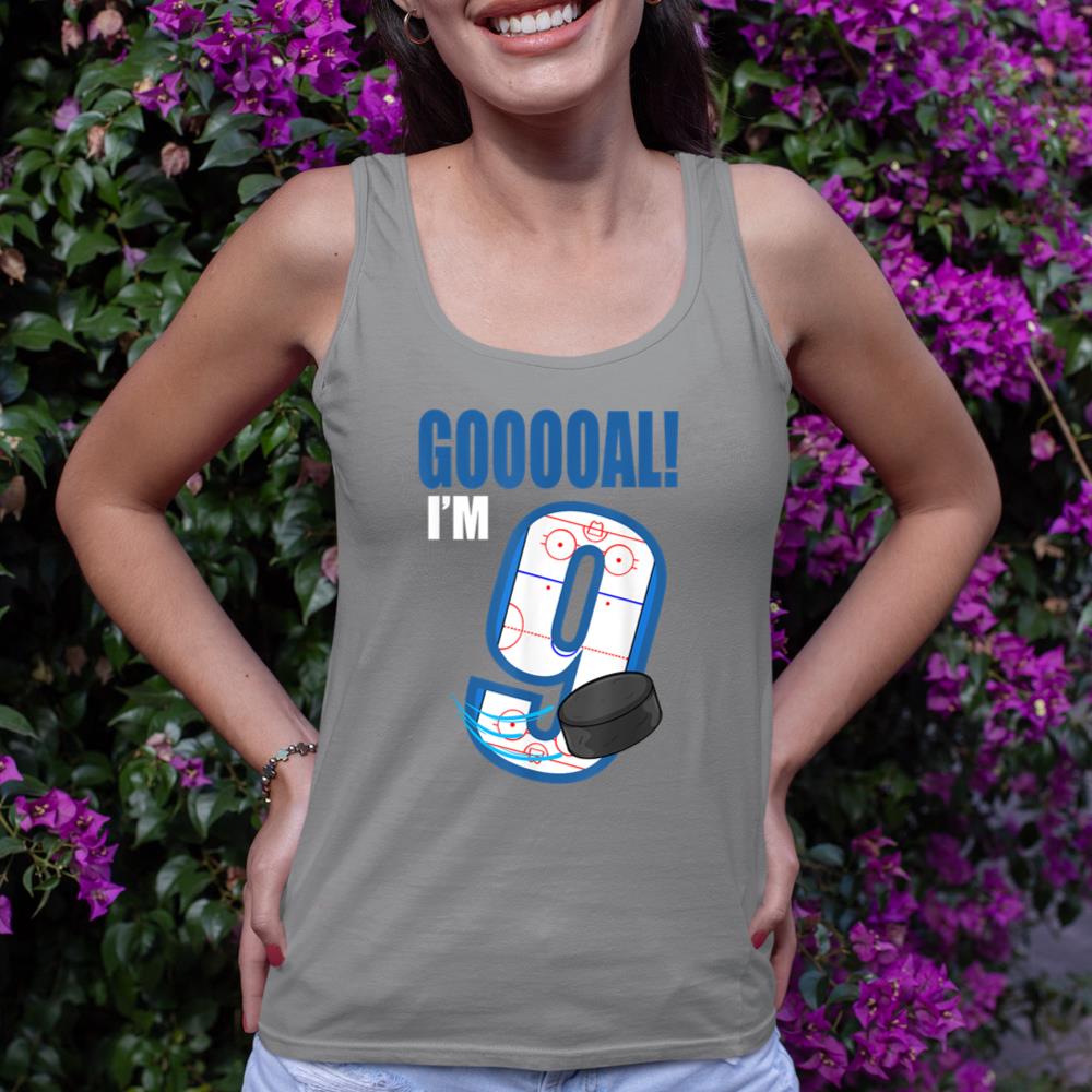 Hockey Player Goal Gooooal I’m 9 Ice Hockey Birthday Tank Top