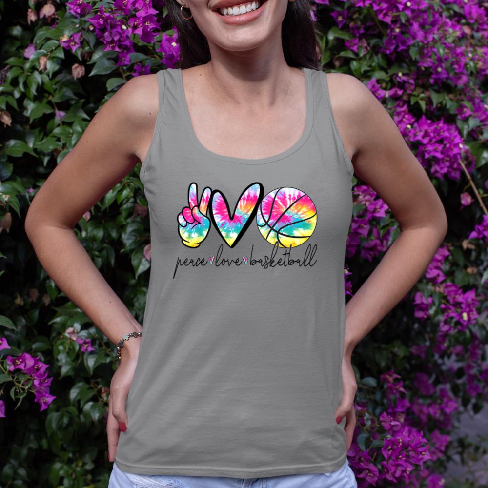 Peace Love Basketball Tie Dye Cute Basketball Lover Tank Top